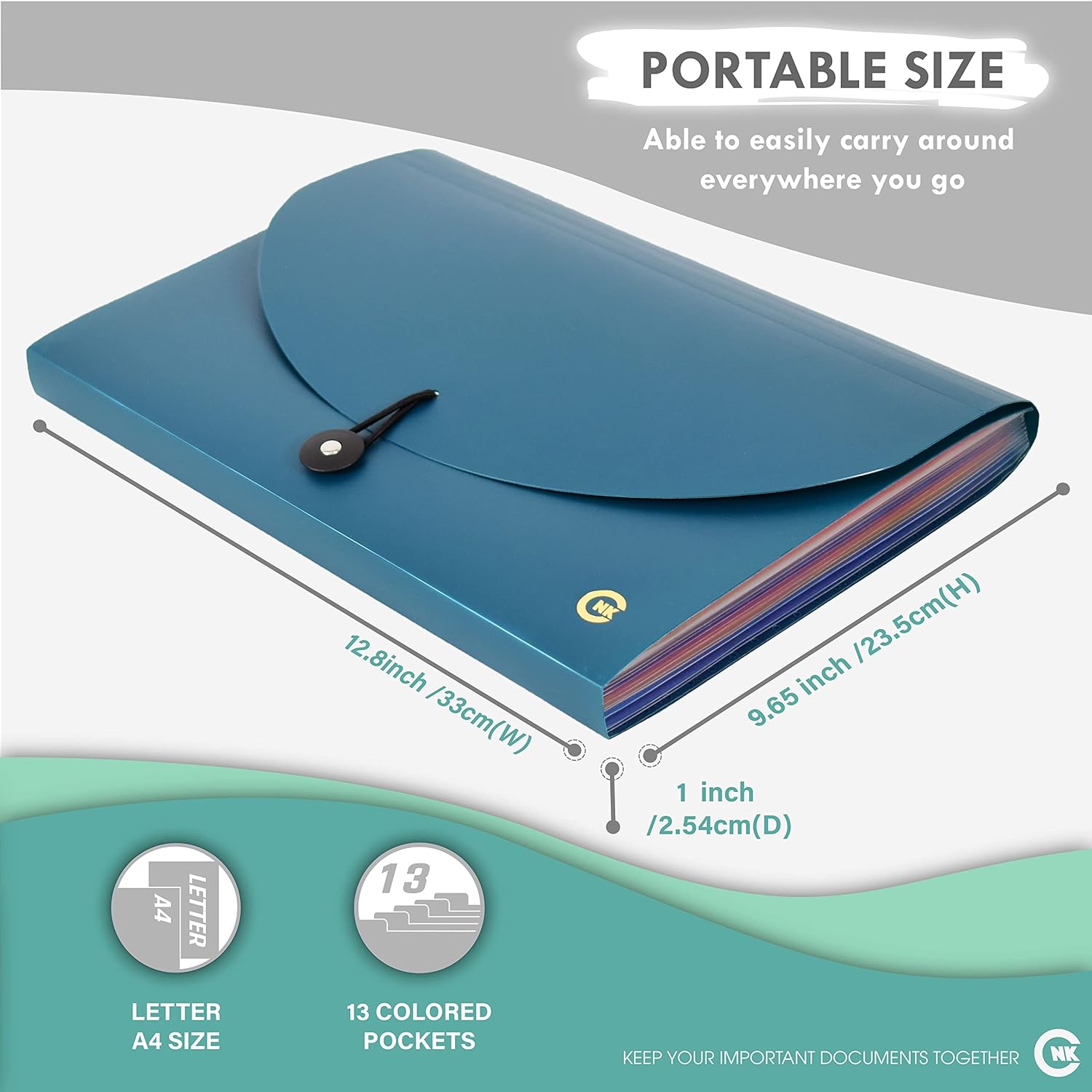 CNK File Folders Organizer with 13 Pockets Accordion Expanding Folder For Documents Receipt Document Paper Pocket Filing Products Accordian Important expandable holder files alphabetical Labels Letter
