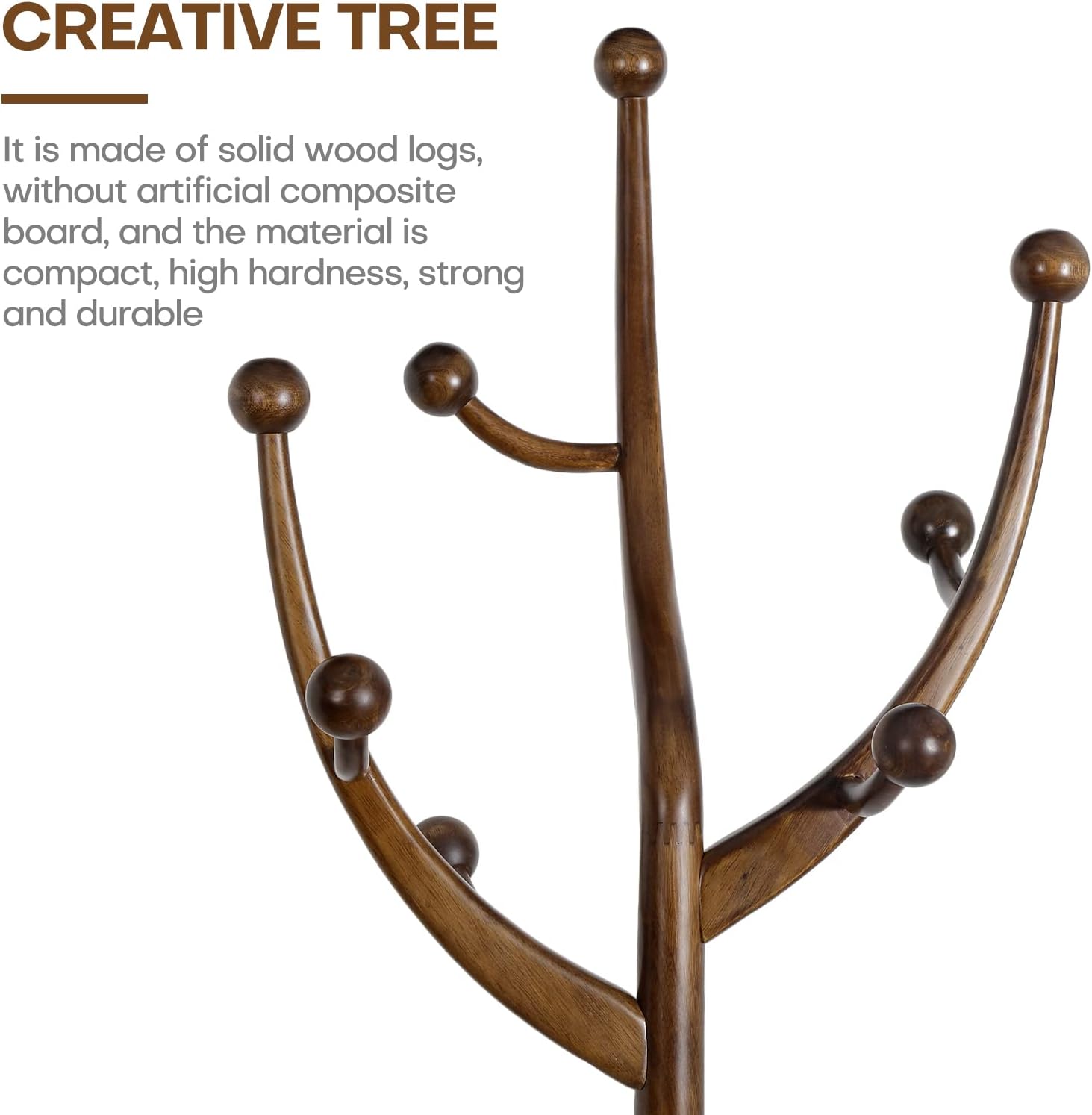 Coat Rack Freestanding Wood Coat Tree Rack with 8 Hooks, Creative Design Tree Branch-look, Standing Coat Rack Clothes Hanger Stand with Stury Base for Entryway, Hallway, Bedroom - Load 160lb (Walnut)