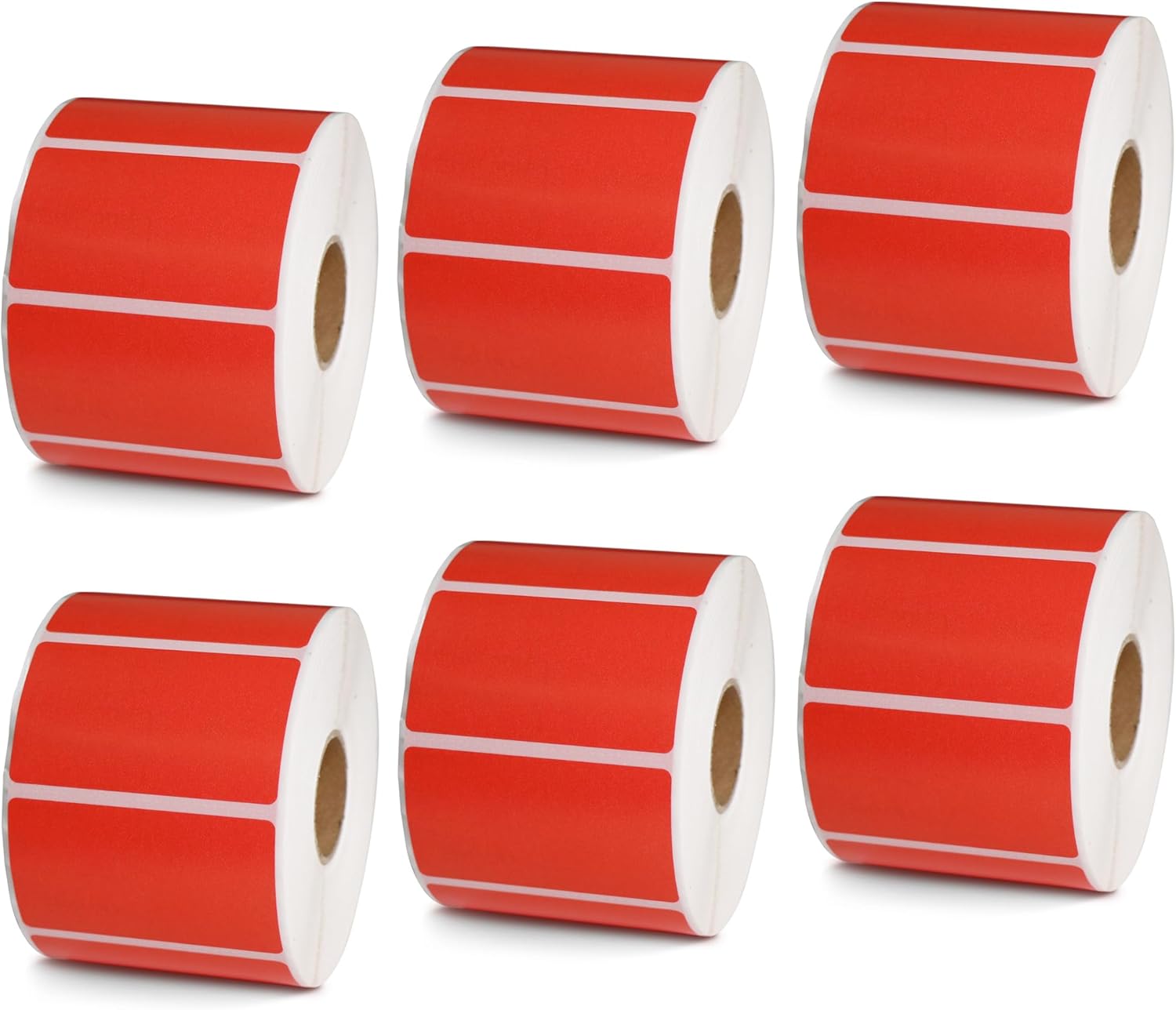BETCKEY - 2.25" x 1.25" UPC Barcode & Multipurpose Labels Compatible with Zebra & Rollo Label Printer,Premium Adhesive & Perforated[Red, 6 Rolls, 6000 Labels]