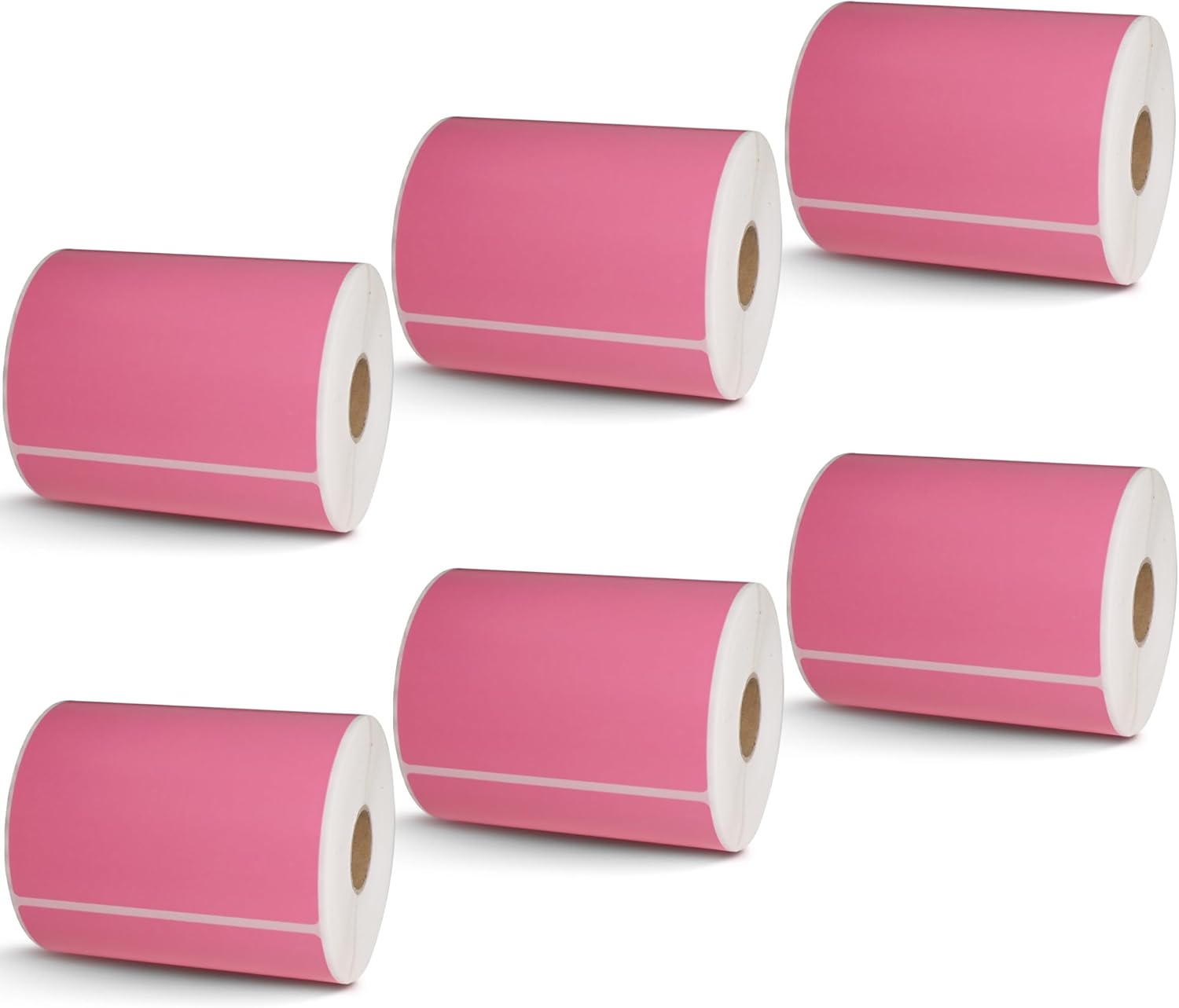 BETCKEY - 4" x 6" Shipping Labels Compatible with Zebra & Rollo Label Printer(not for dymo 4XL),Premium Adhesive & Perforated[Pink, 6 Rolls, 1500 Labels]