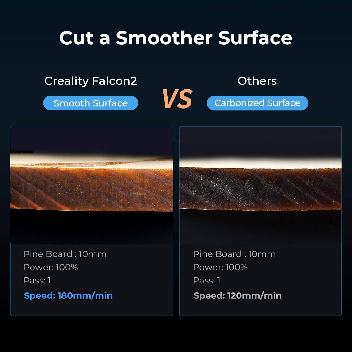 - Engraving Speed up to 25000mm/min, High Accuracy - Compared with the Creality 10W engraving machine, the cutting speed of the Creality falcon 2 laser engraver is increased by 200%, and the engraving speed is increased by 100%. Out of the box, you can typically assemble a Creality falcon 2 laser engraver in 10-20 minutes