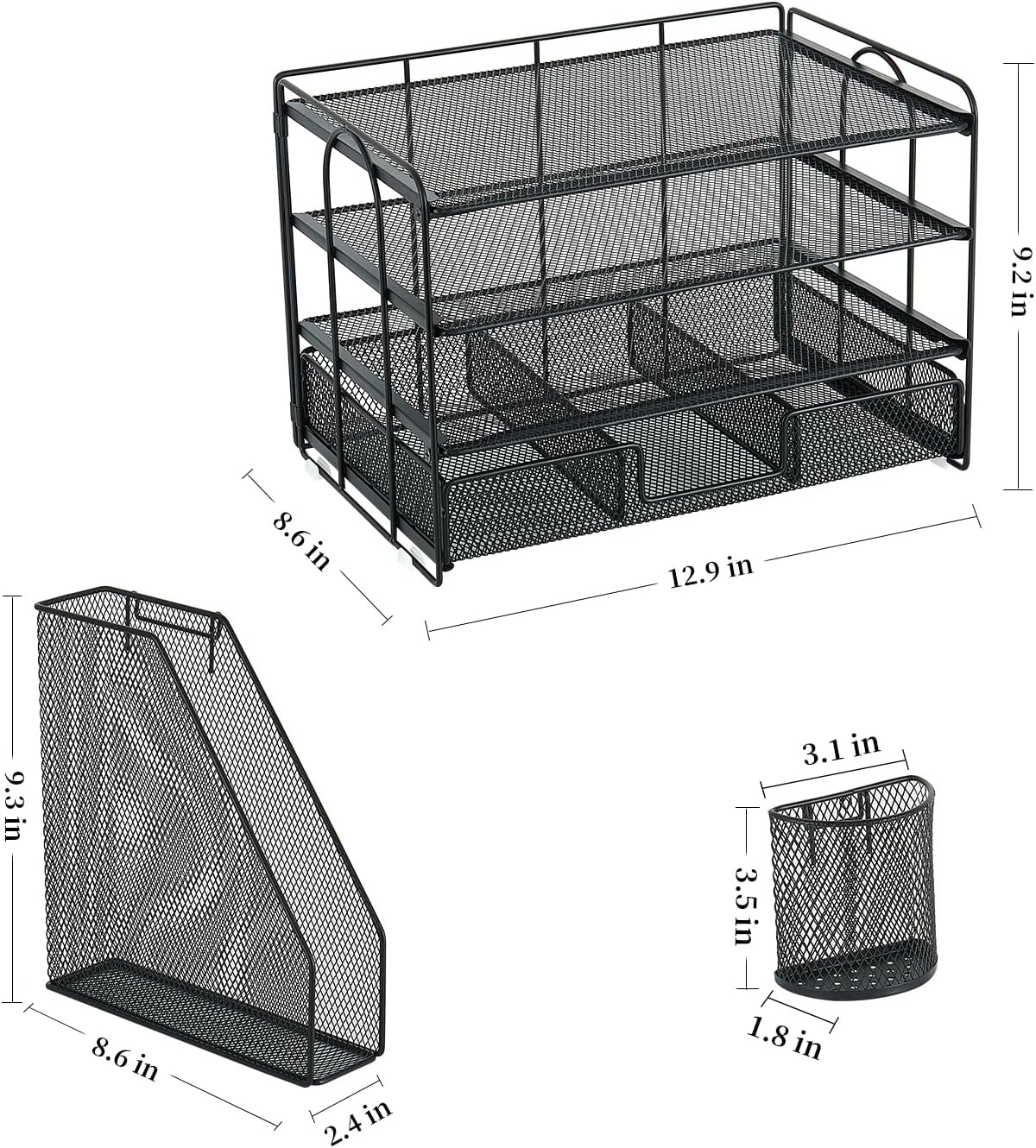- 📂【Long Lifespan】: The office supply desk organizer is made of durable metal mesh and solid steel for better stability and durability, and the outer layer is coated with epoxy resin, which is rust-resistant and highly water-resistant, ensuring a longer life Long service life.