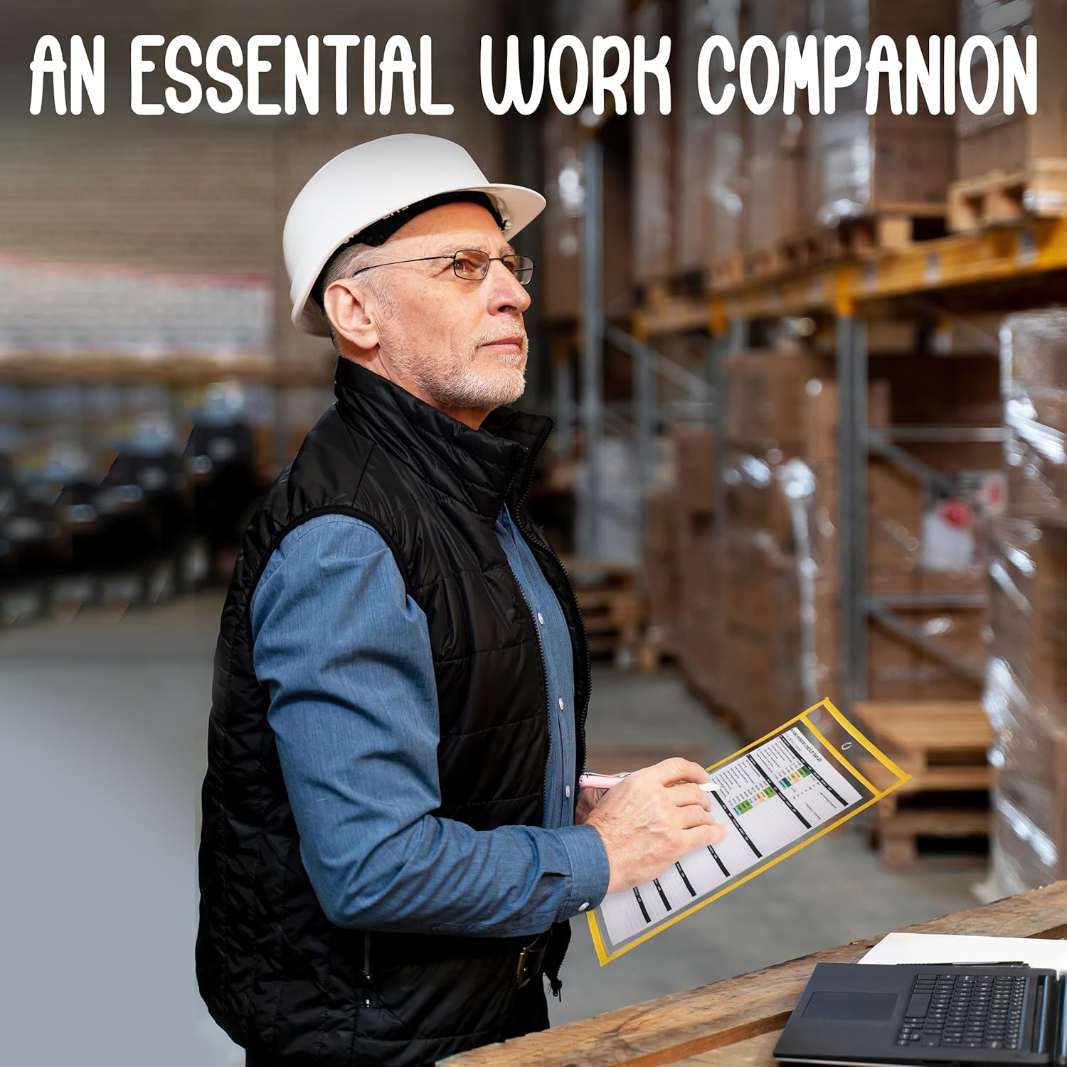- Durable and Water Resistant - Crafted from durable, water-resistant plastic, our workorder sleeves provide resilience against ripping or crumpling. Your documents will remain secure even in the toughest conditions.