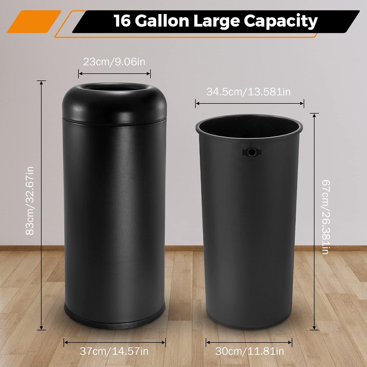- HIDDEN GARBAGE BAG DESIGN - The lid of the large trash bin can be lifted off easily to quickly change the bag, and the garbage bag can be fixed on the inner trash can. The hidden garbage bag design can keep the beauty of the stainless steel trash can, ideal for home, commercial or industrial use.