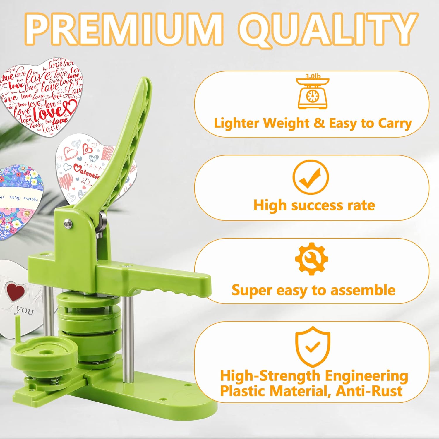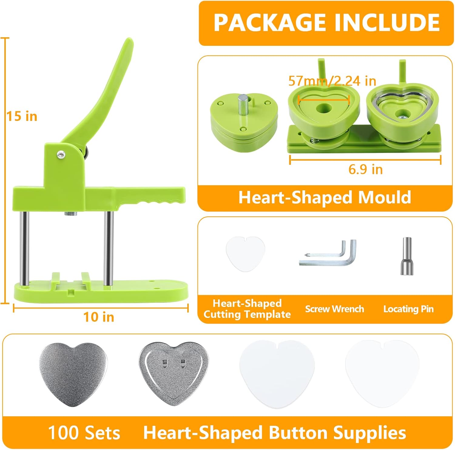 Heart Button Maker Machine Replaceable Badge-Model, DIY Button Pin Maker Kit, Badge Press Machine with 100PCS Heart Badge Making Supplies & Circle Cutter