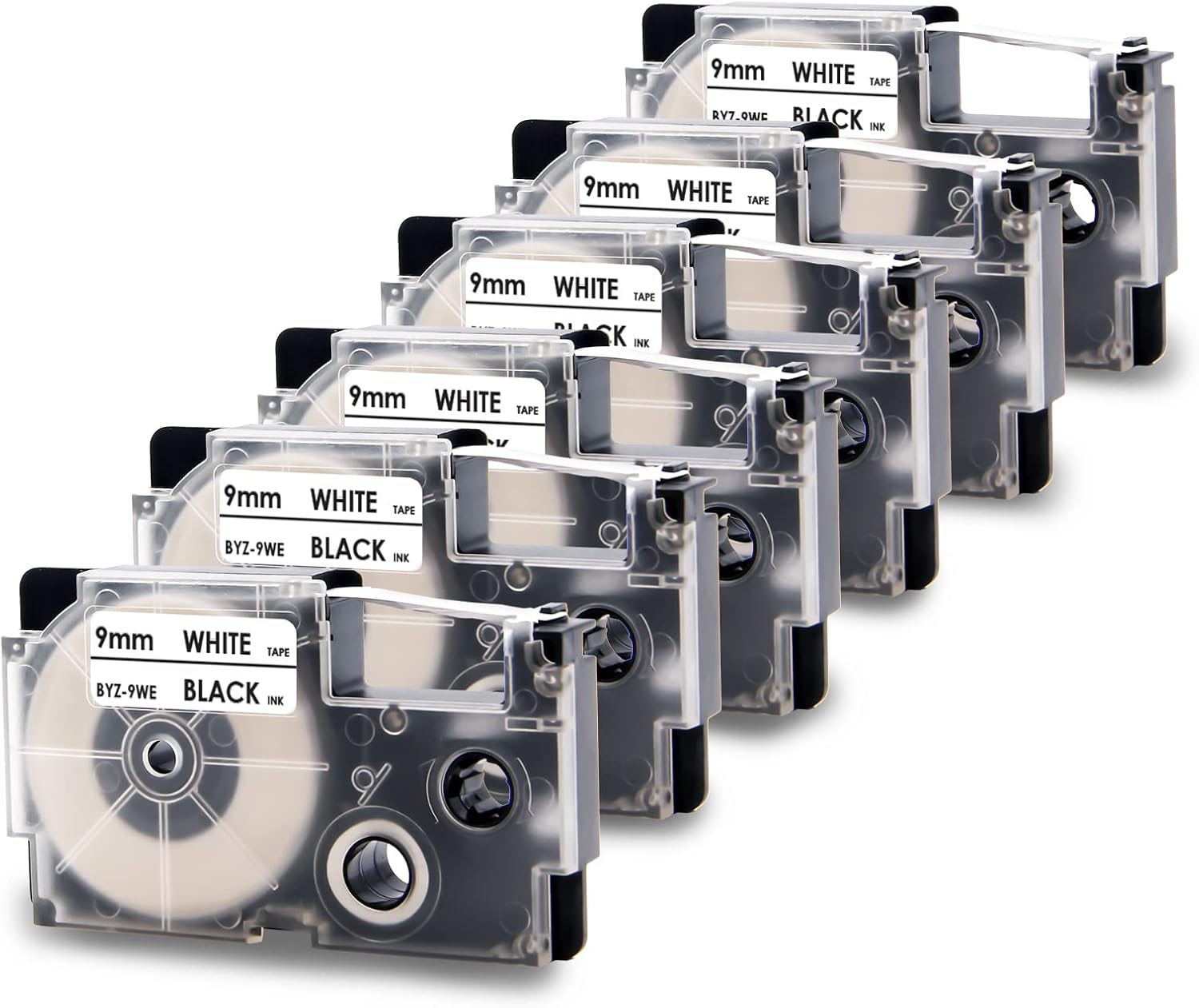 - Packing list: 6 Pack Black on White XR-9WE tape Compatible Label Tape.(Non-OEM)