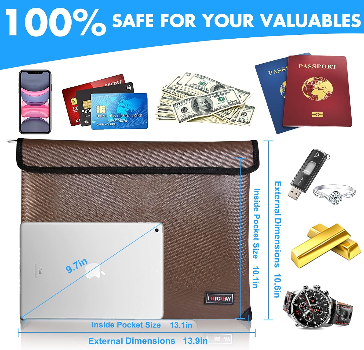 - Recommended Uses For Product : Camping, Documents and files storage, Heat Insulated, Jewelry, Laptop,Tablet, Money and documents Organizer, Passports, Travel, Valuables storage, cash holder, certification Camping, Documents and files storage, Heat Insulated, Jewelry, Laptop,Tablet, Money and documents Organizer, Passports, Travel, Valuables storage, cash holder, certification