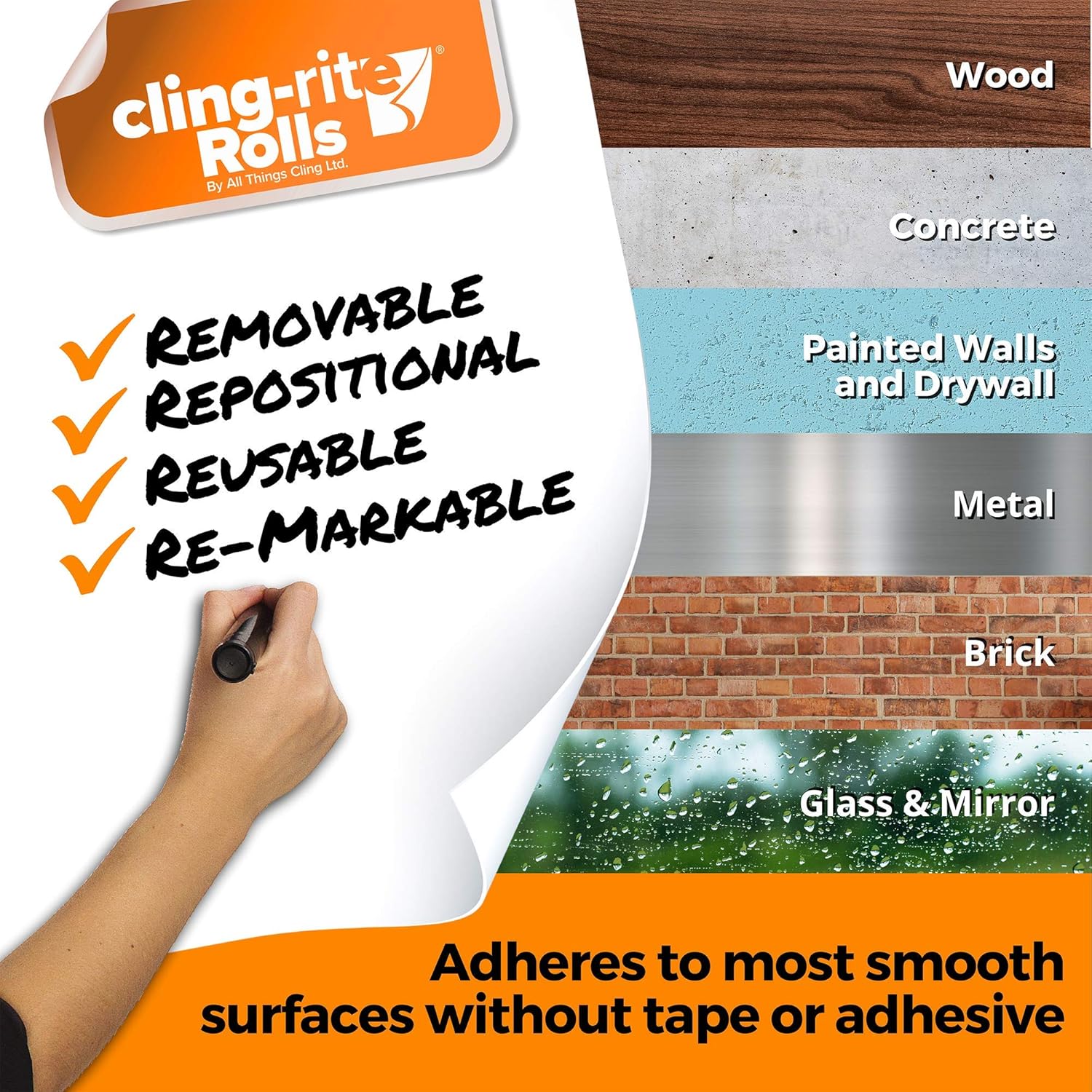 Backpacker Cling-rite Rolls Clingers Dry Erase Portable Whiteboard - 45' ft Roll with 30 Sheets, 12"x18" Reusable Surface for School Supplies, Office Decor, Kids Art & Craft Projects - American Made