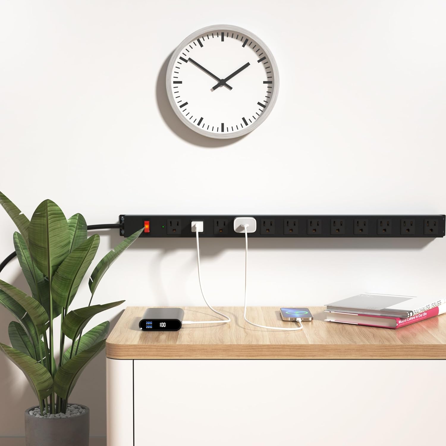 - 【 CONVENIENT OPTIONS 】12 wide spaced (1.69 inches) AC outlets, useful in the routing of power for the various components and organize the power cord. 6 FT extension cord provides to ability to reach distant outlets socket hole.