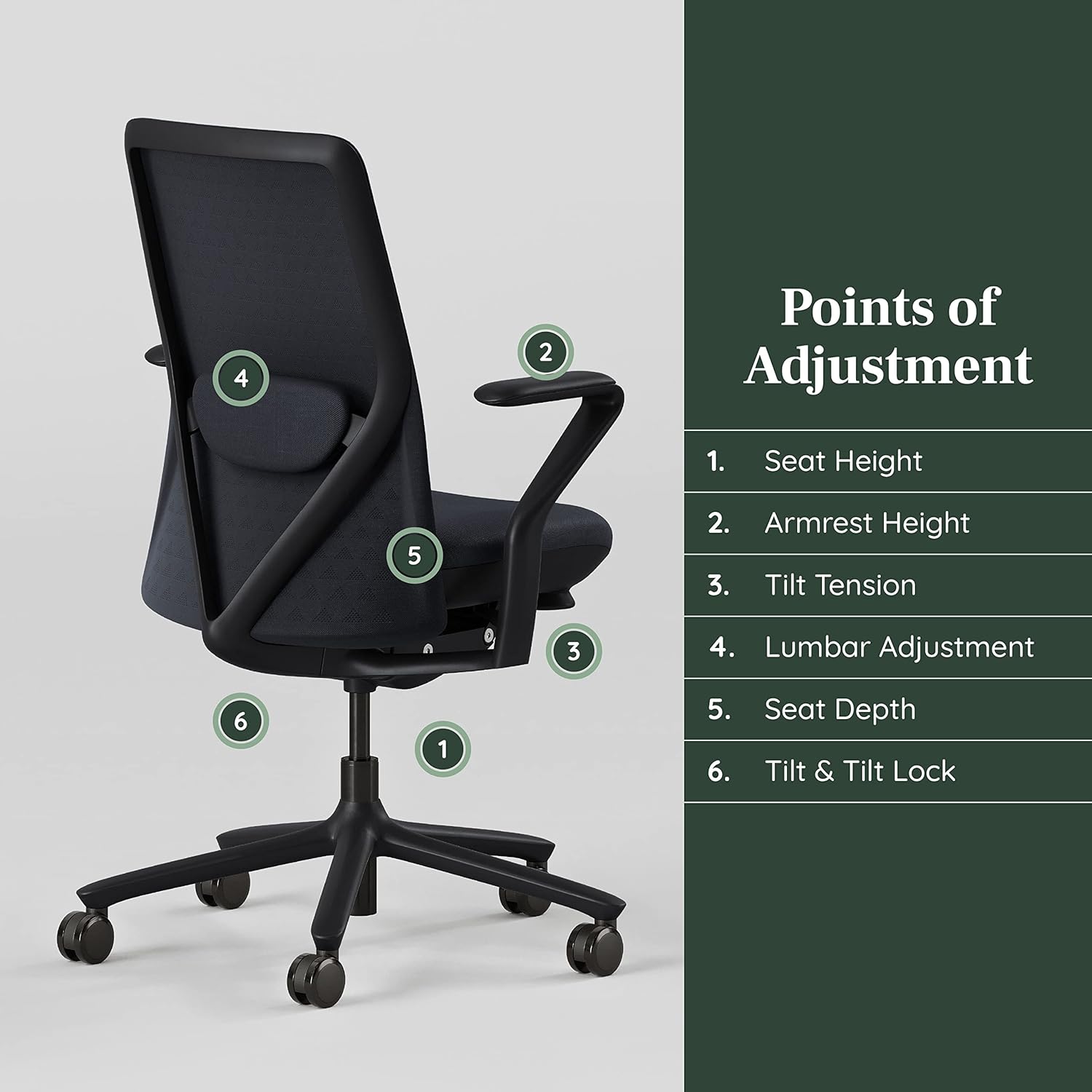 - ADJUSTABILITY: The Branch Verve Chair offers six points of adjustment including tilt and tilt lock, seat height, seat depth, armrest height, lumbar height, and tilt tension, making it an ideal executive desk chair.