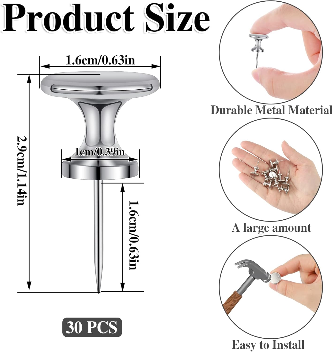 30 Count Jumbo Metal Push Pins 1.14 Inch, Giant Thumb Tacks for Wall hangings 20 Lbs Poster pins for Cork Board Bulletin Maps Office Home Classroom Decorative