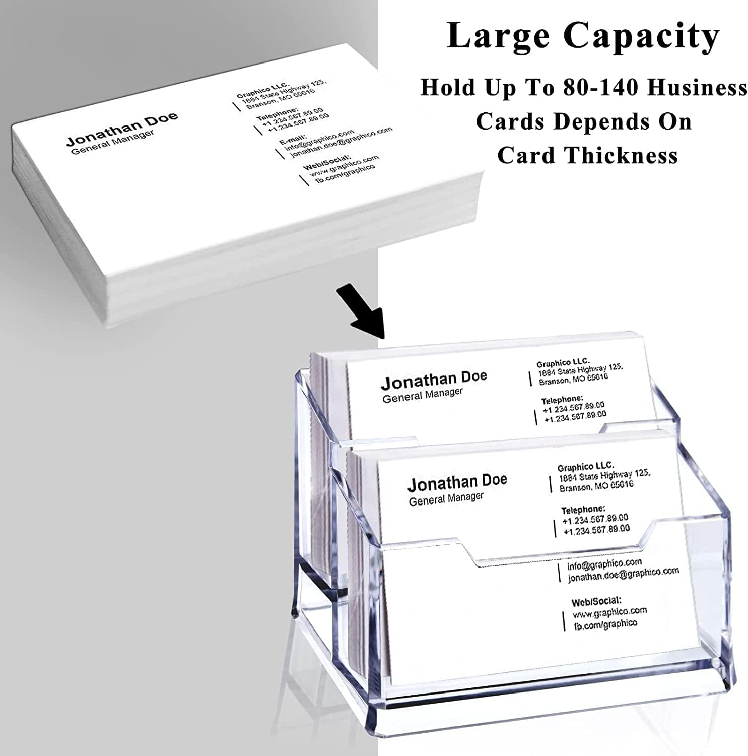 3 Pack Clear Acrylic Business Card Holder,2 Tier Premium Acrylic Clear Business Card Holder Stand for Desk Fits 100 Business Cards