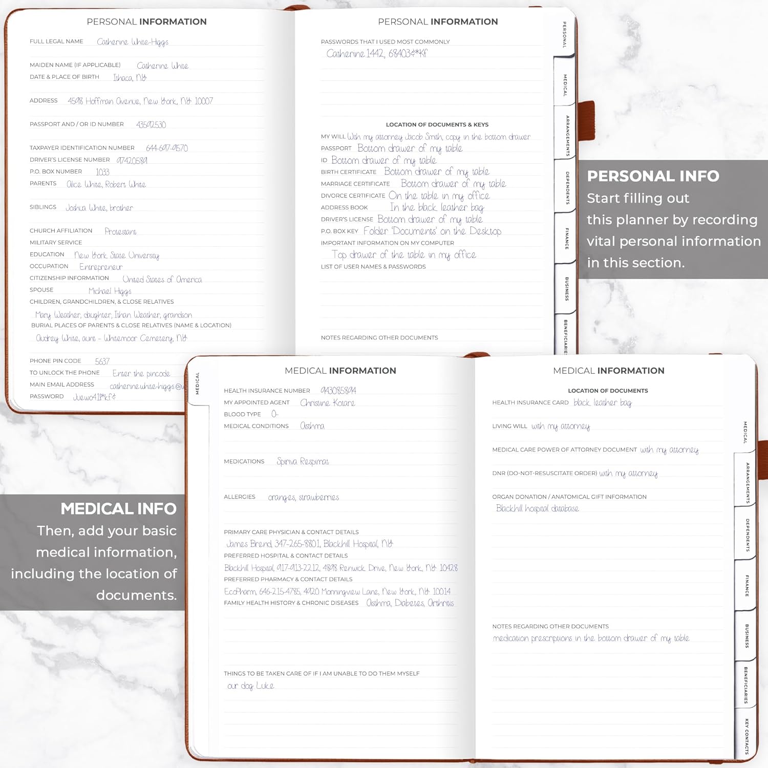 - PREPARE DETAILED INSTRUCTIONS TO GUIDE YOUR LOVED ONES: This guided final arrangements planner is an easy-to-use tool for organizing all essential personal information, from medical data to passwords and financial records.