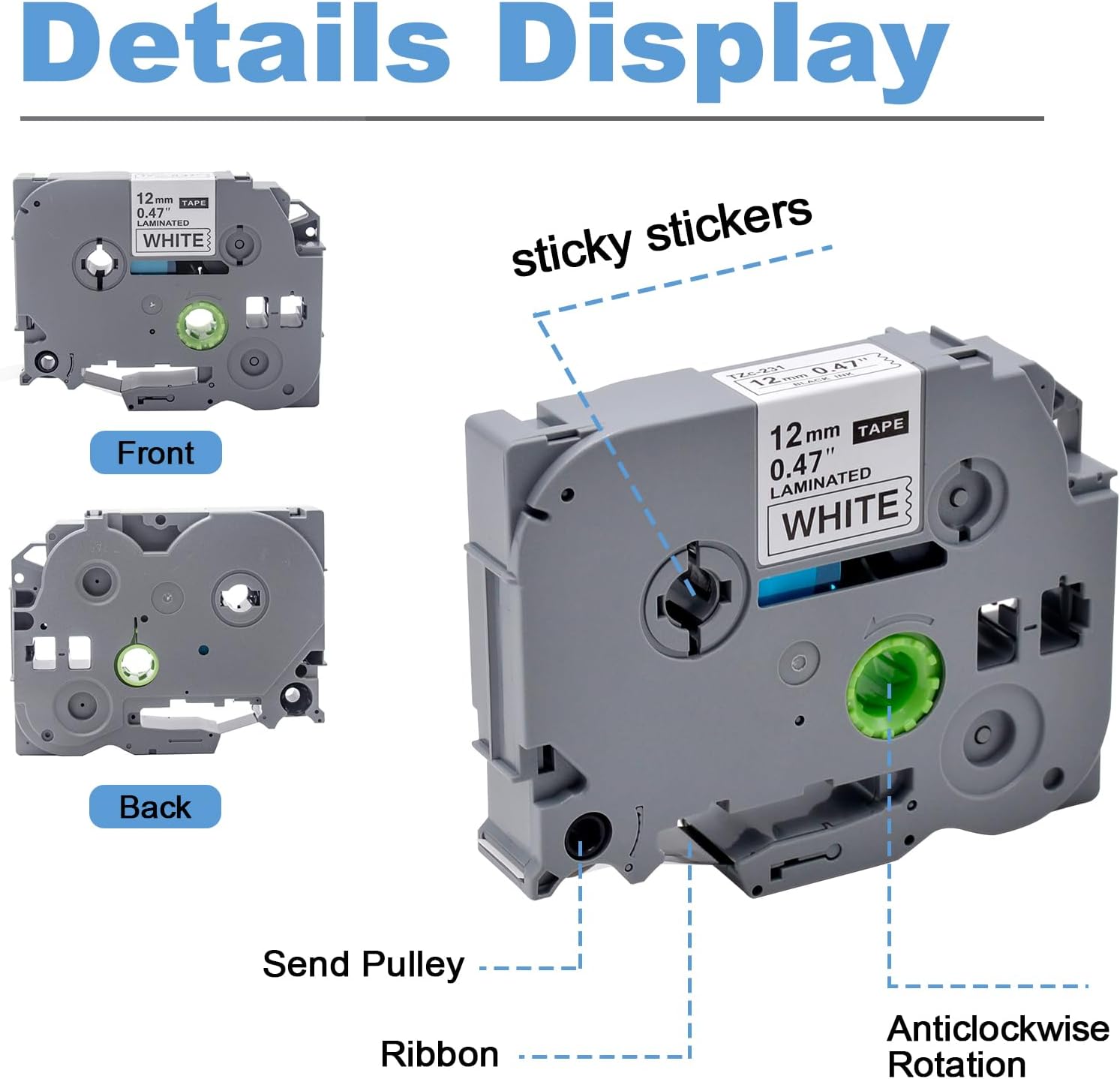 - GREENARK Compatible label maker tape TZe231 1/2"(0.47") replacement for P-Touch TZE-231 label tape. TZE-231 label maker tape is affordable, easy to apply, durable and perfect for indoor or outdoor daily use.