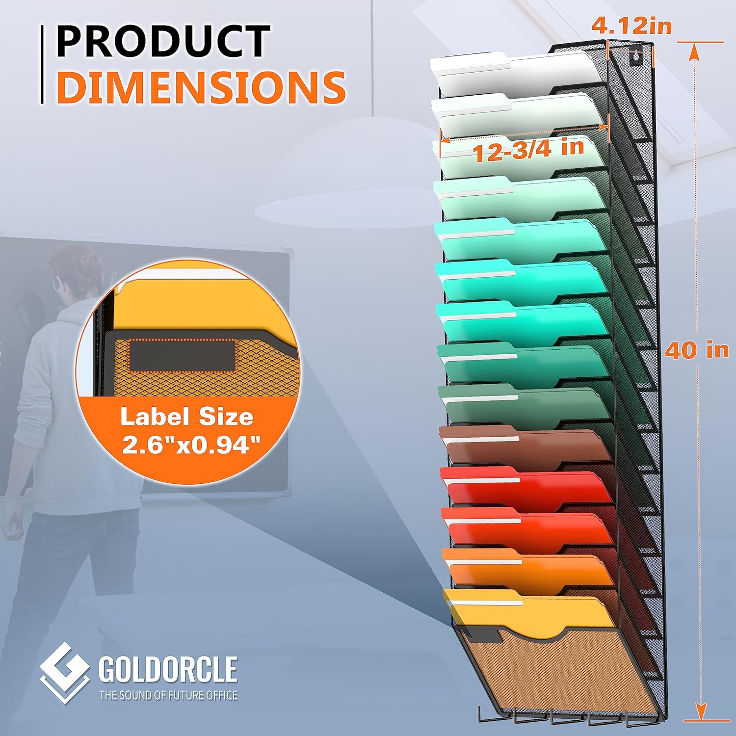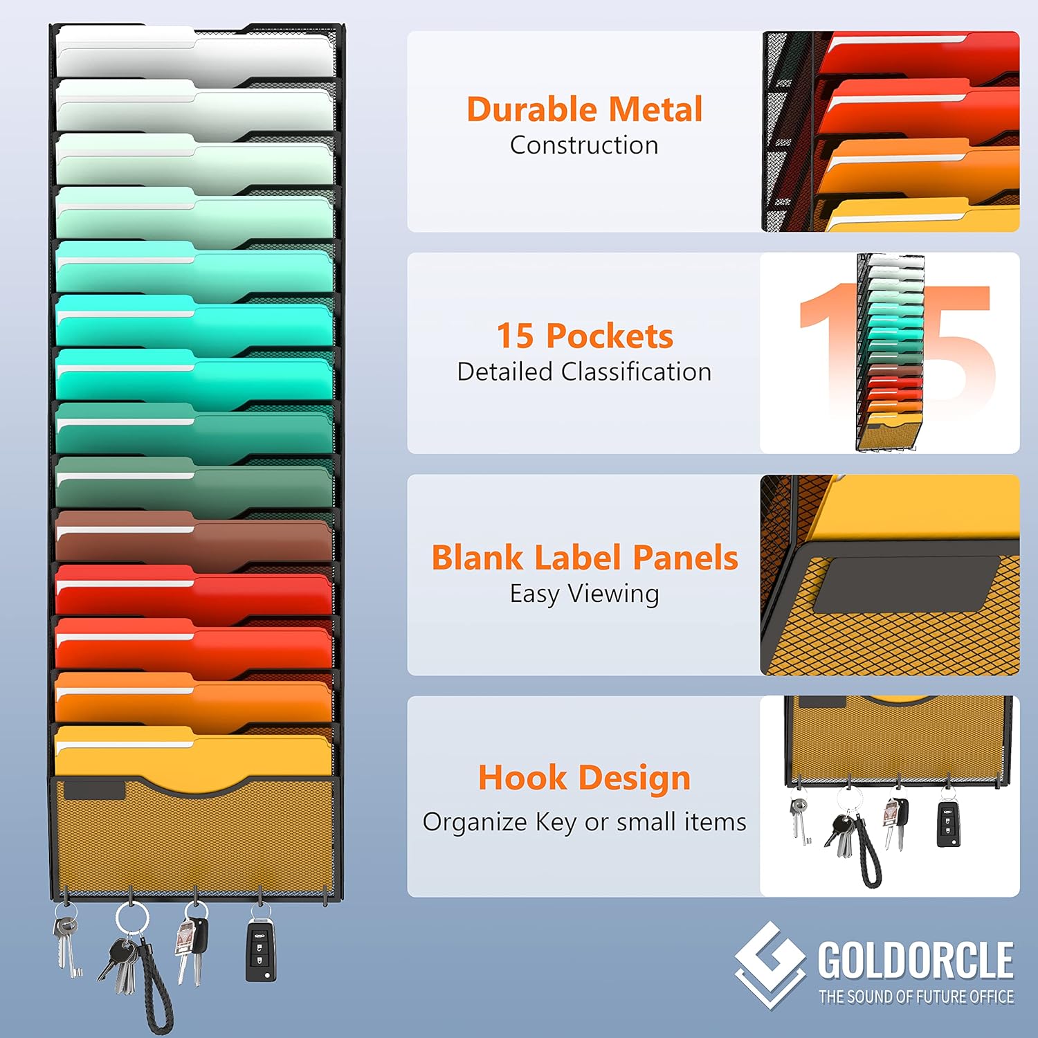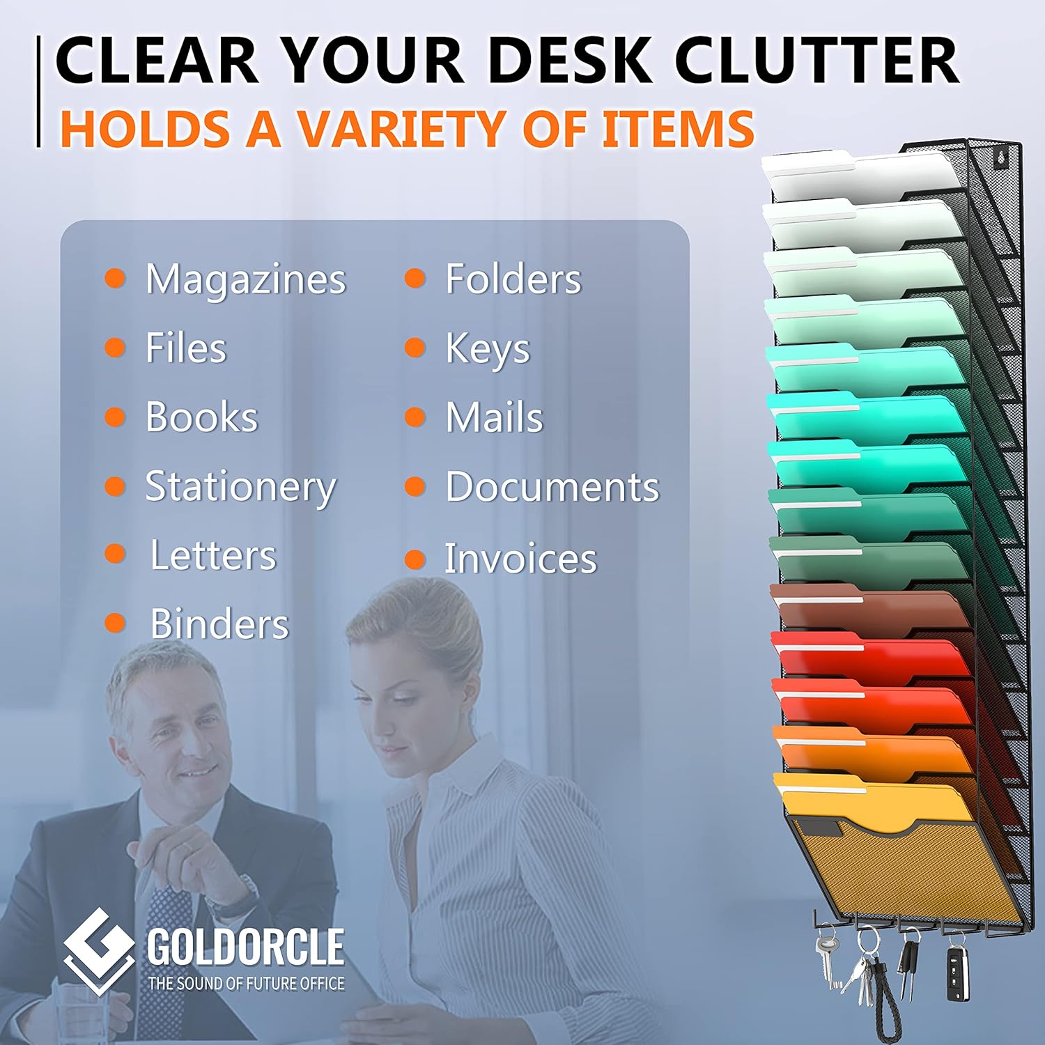 10-Tier Hanging Wall File Organizer Wall Mounted File Holder Document Wall Organizer for Office Organization and School Storage (No Assembly Required) (15 Tier Black)