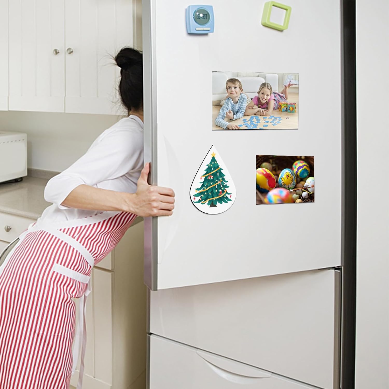 - 【Multiple Possibilities】Magnetic sheets with adhesive backing makes it easier to use, the magnet sheets can be conveniently cut into different sizes to perfectly accommodate your pictures / cards.We suggest measuring the size of your needs before trimming. After cutting, peel back the protective sheet, apply what you want, and then stick to any magnetic metal surface.