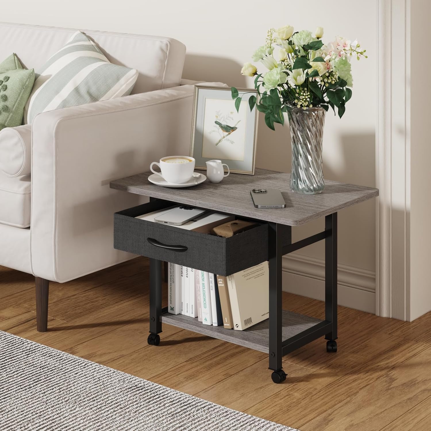 22"x15" Large Printer Stand with Storage Drawer, 2-Tier Under Desk Printer Table for Home Office, Printer Cart fit Fax Machine/3D Printer/Scanner(Gray)