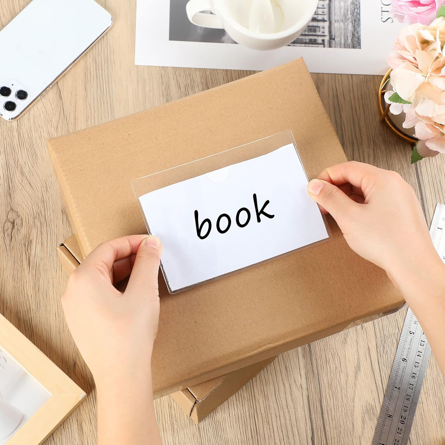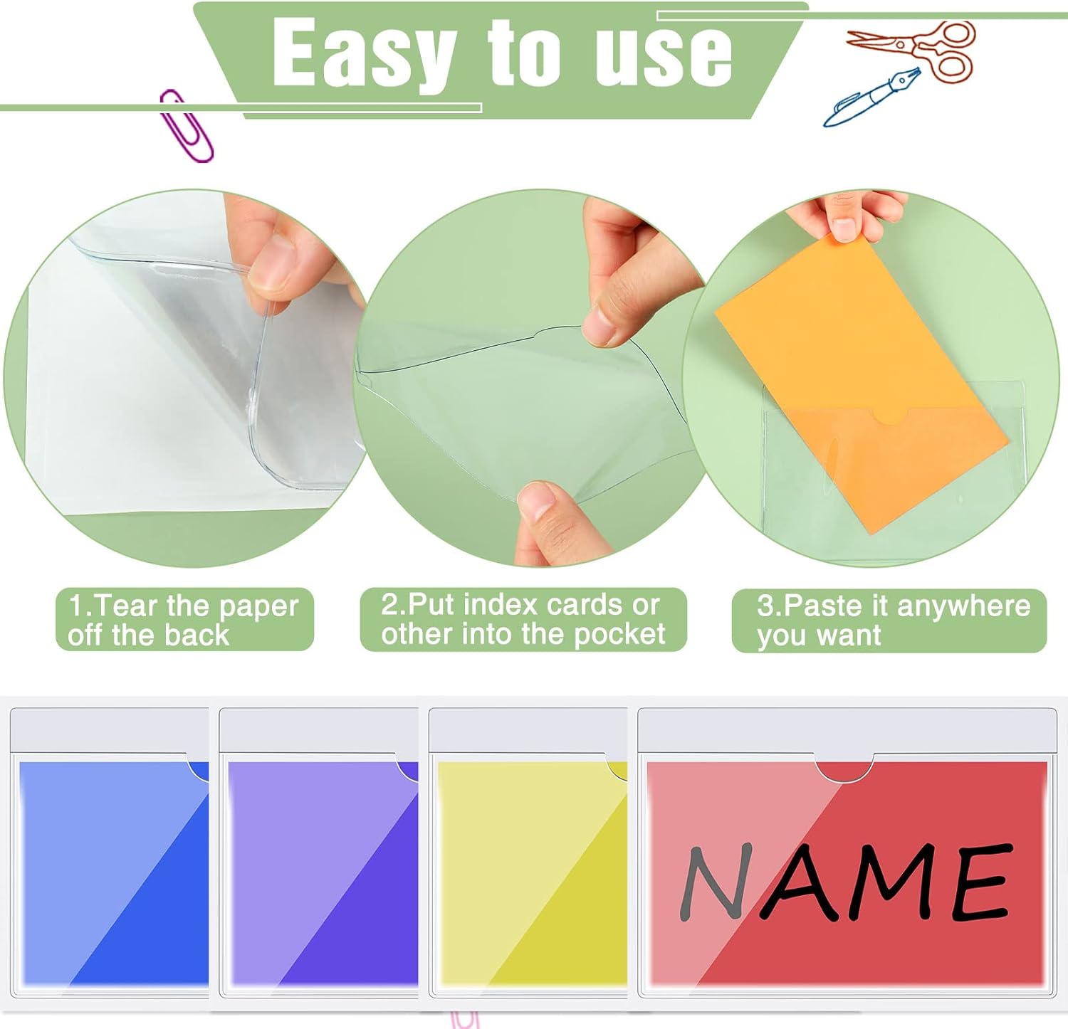 - Applicable Cards:the outer size of clear adhesive pockets is 3.7 x 5.3 inches, specifically designed to accommodate 3 x 5 inch cards;You will receive 50 self-adhesive card holder for labels, waterproof, dustproof, and fingerprint-resistant