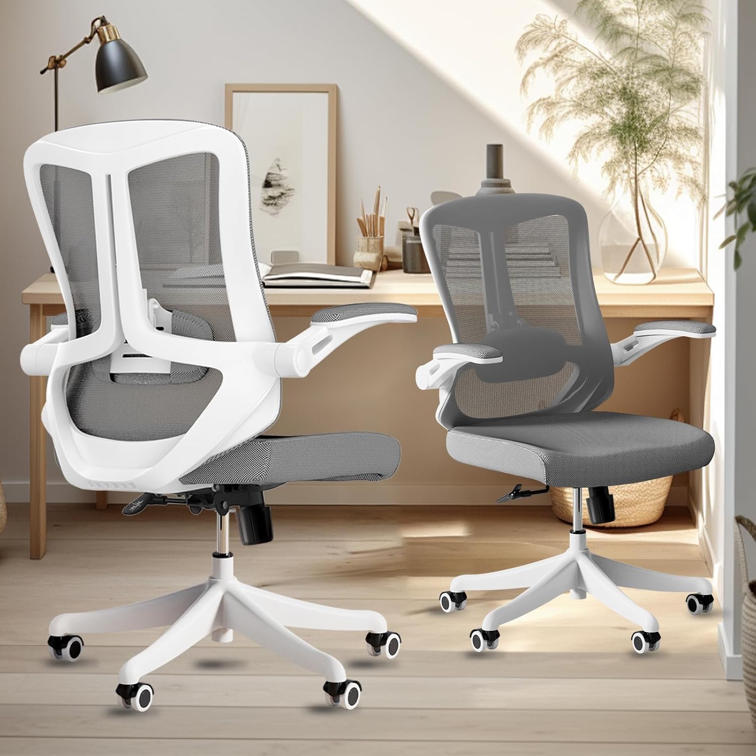 Computer Office Chair, Ergonomic Comfort Home Desk Chair, Mid Back Gaming Chair with Wheels, Adjustable Height, Lumbar Support, Flip-up Armrest with 350LBS Capacity