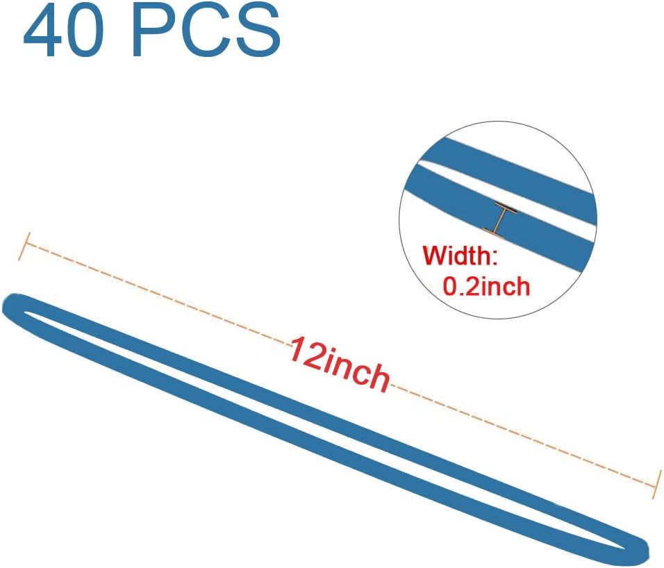 AMUU Rubber Bands Large Flat Fold Length 12inch 40 Pieces Fits 8-33 Gallon Trash Cans Blue Heavy Duty Elastic Rubber Bands for File Folders Office Home Supplies