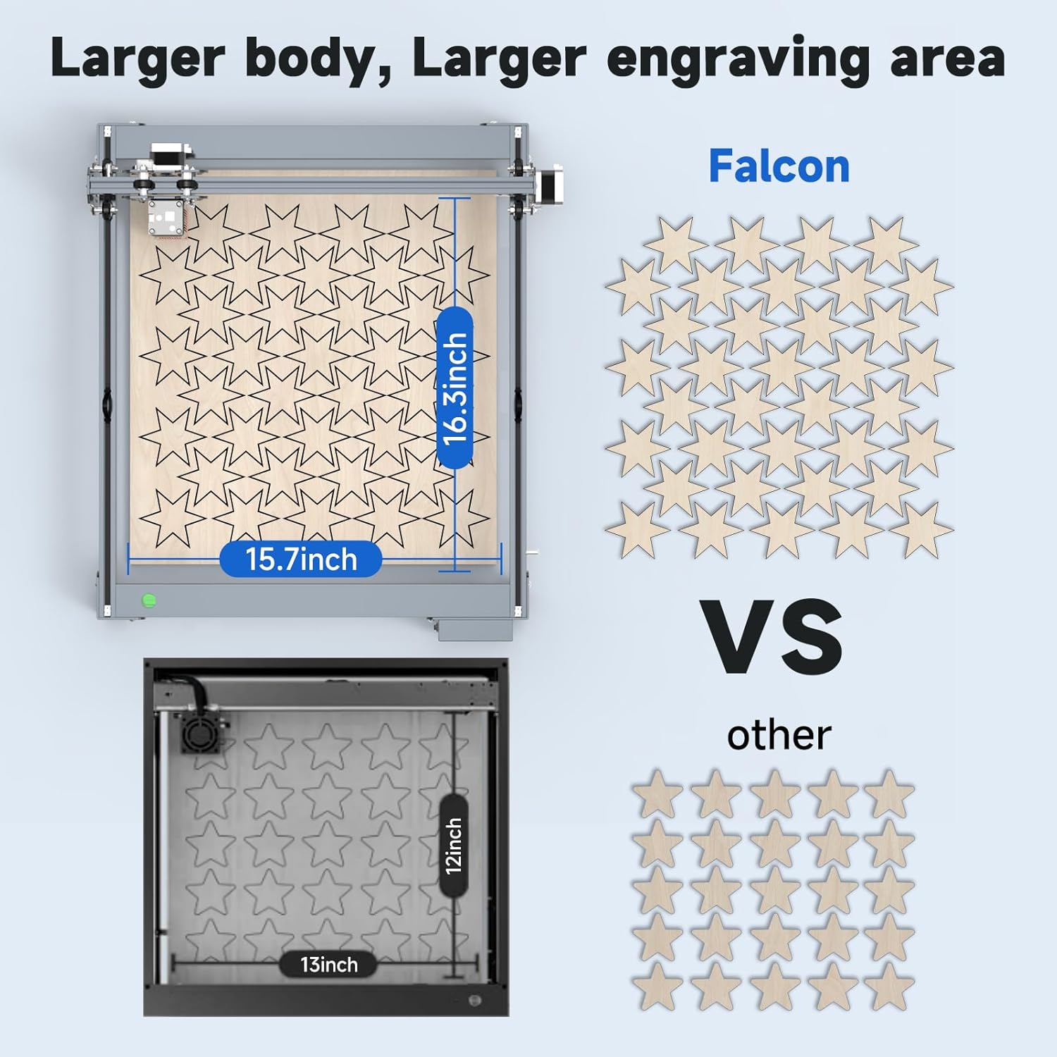 - 【Accurate Engraving and Cutting】The fine spot focus of 0.06 x 0.06mm allows for precise control of engraving/cutting accuracy to within 0.004 inches and repositioning precision to within 0.007 inches. Dual stepper motors and a built-in 32-bit mainboard with an integrated aluminum alloy design provide stability during high-speed movement. By setting the parameters simultaneously, colorful designs can also be engraved.