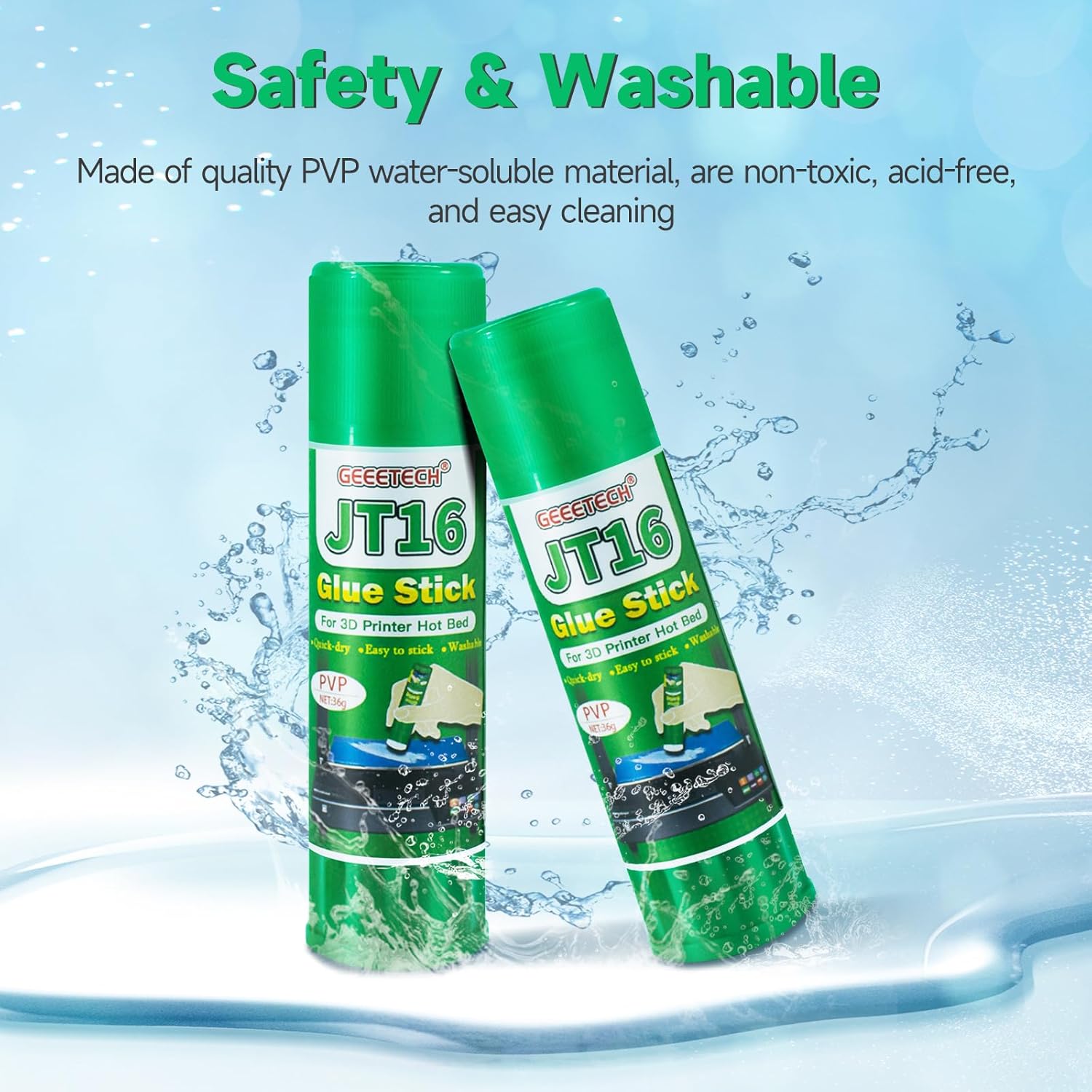 - Safe: 3D printer glue stick is made of quality PVP material, are non-toxic and acid-free, do not give off any unpleasant fumes when heated, and don't have any detrimental effect on your project or health. You can have peace of mind when the kids are using it.