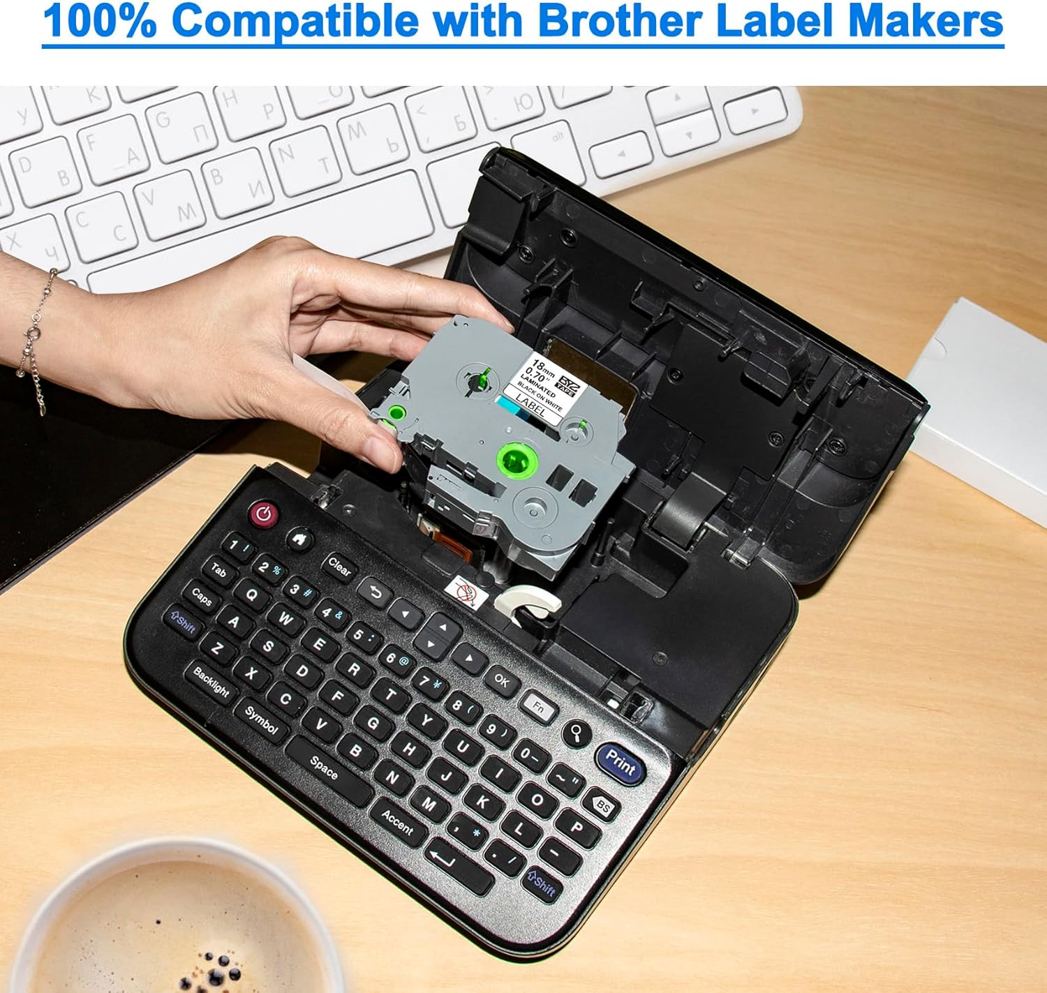 - TZe Tz tape 18 mm 0.7 laminated clear compatible with Brother ptouch label makers: PT-D400,PT-D600,PT-D410,PT-D460BT,PT-D610BT,PT-D400AD,PT-D400VP,PT-D600VP,PT-P710BT,PT-P750W,PT-E550W,PT-P700,PT-2730VP,PT-H500LI,PT-2730,PT-2430PC,PT-D450,PT-1880,PT-1830,PT-1890SC,PT-2300,PT-300,PT-310,PT-E300,PT-E300VP,PT-E500,PT-E550W,PT-520,PT-530,PT-540,PT-550,PT-1400,PT-1500,PT-1500PC,PT-1600,PT-2110,PT-2200,PT-2210,PT-2300,PT-2310,PT-2400,PT-9700PC and more