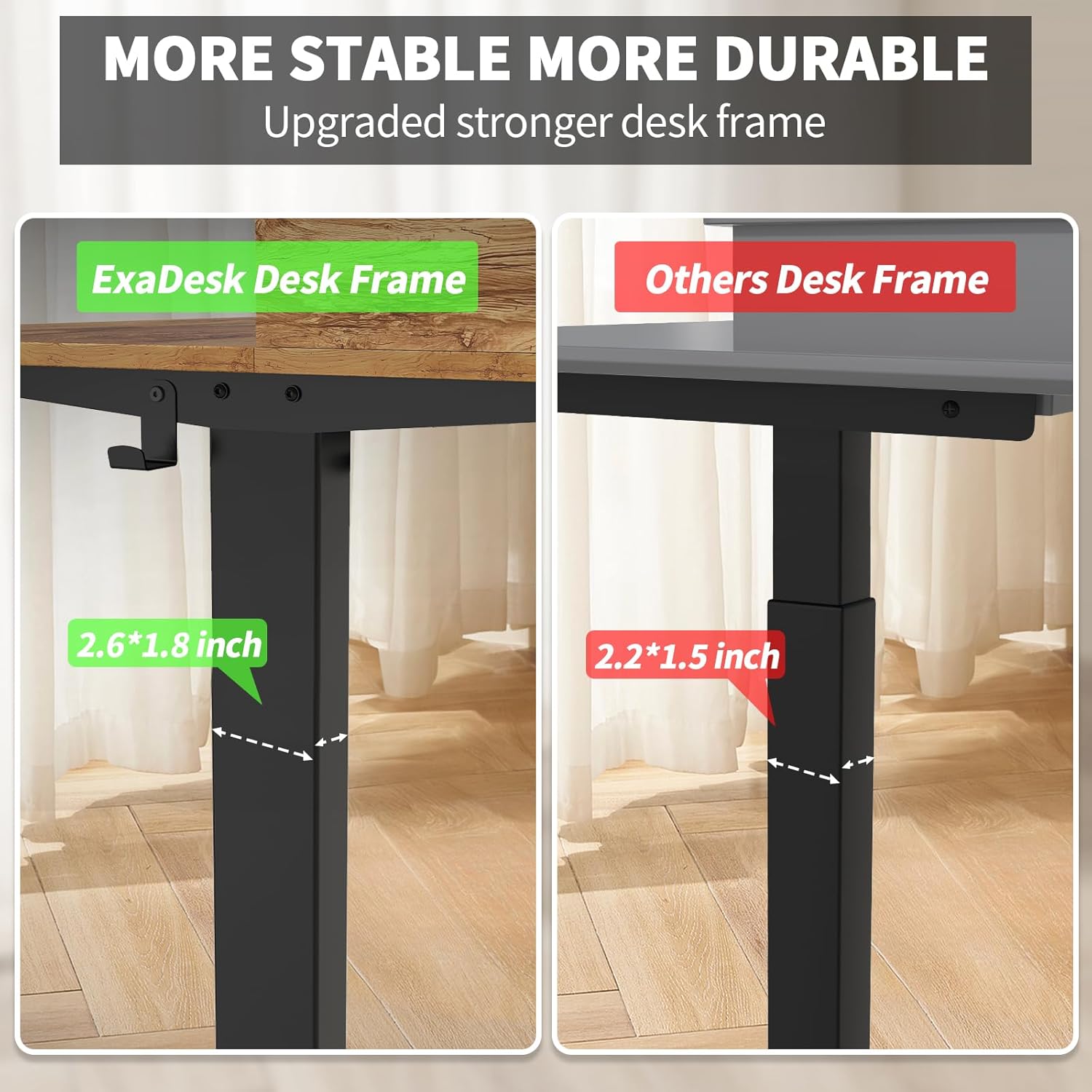 - ✨Excellent Cable Management & Hooks Design: Specially optimized the cable management of mobile electric standing desks. Enough adhesive straps for fixing the wire. Hooks on both sides of the adjustable standing desk are designed for Backpacks, headphones, or storage bags. DC motor can hold up to 180 lbs.
