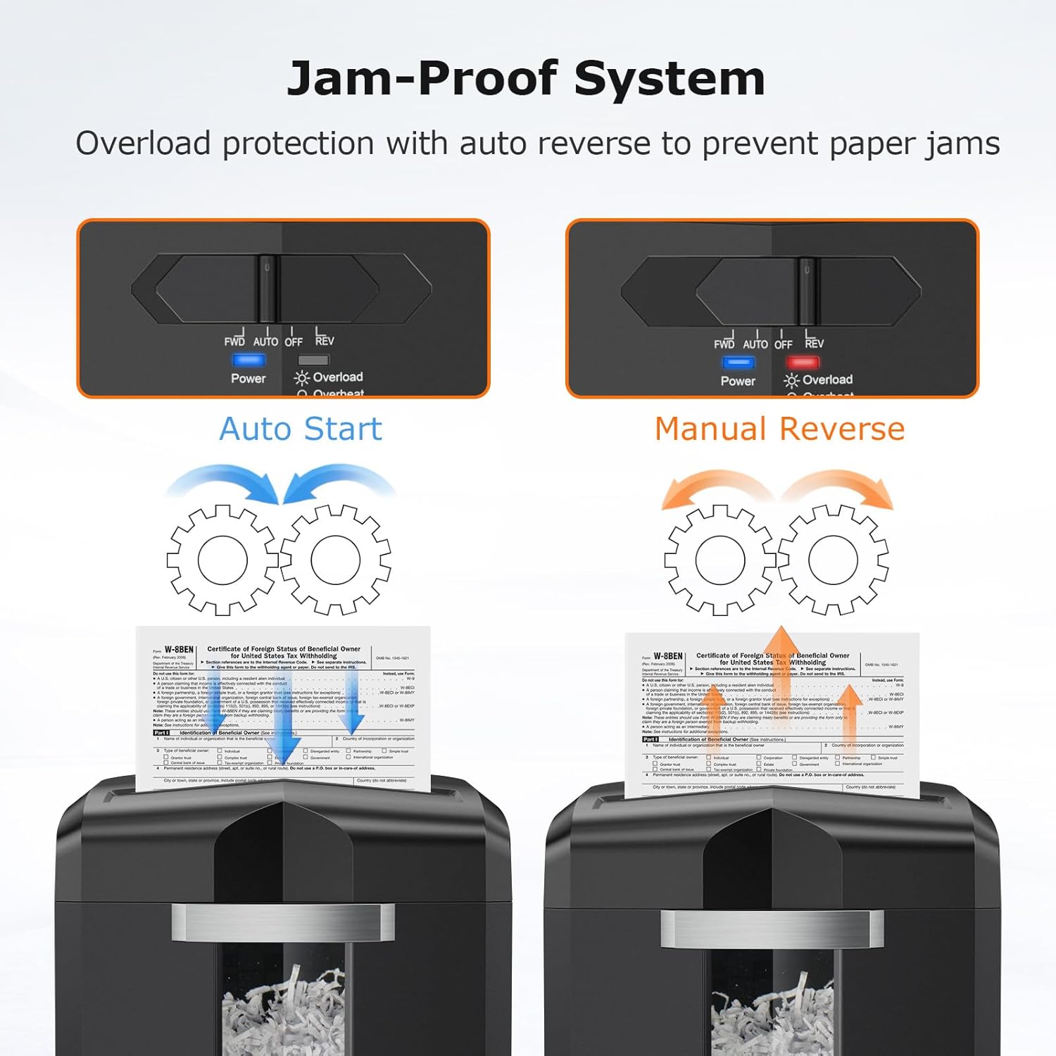 - [Enhanced Protection Features] The shredder is designed with overheating and overloading protection to maintain optimal performance and longevity. It also automatically stops when the bin is removed, ensuring seamless operation, suitable for Home Office Use