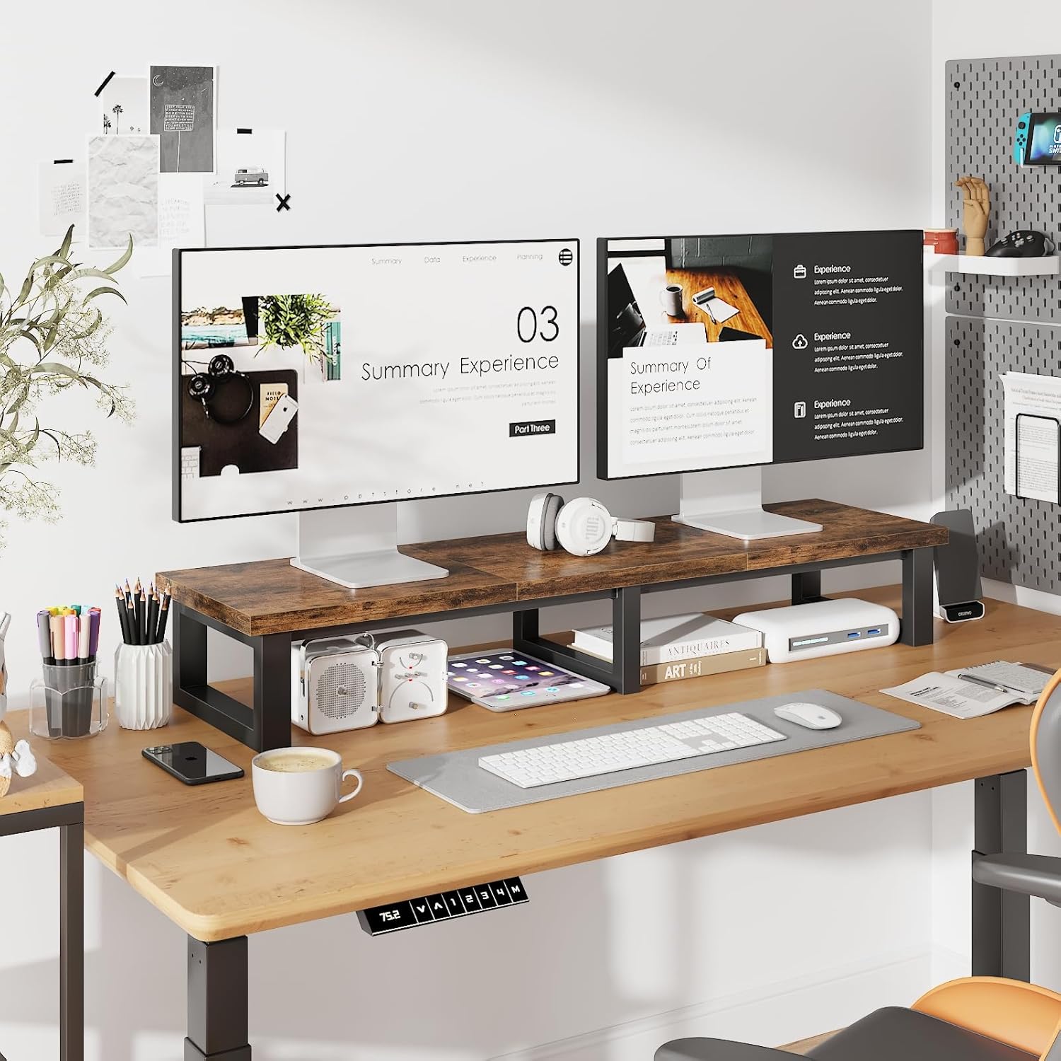 - 【Large TV Riser Stand】Dimensions:45"L×11.8"W×7.1"H. Large TV riser stand can allow your flat or curved TV/Monitor (up to 60"), monitor stands for 2 monitors(up to 32"). Ideal for your living room,bedroom,office.