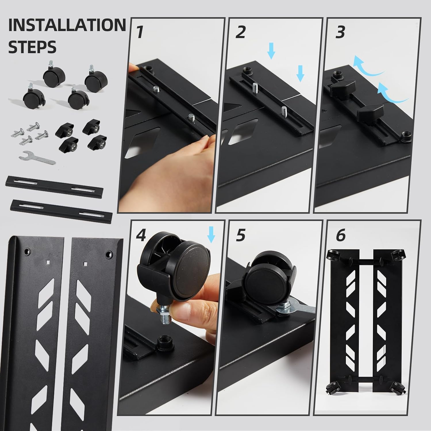 - Practical Design: The protective railings on both sides of the cpu stand are designed to prevent the pc chassis from falling. It gives you very easy access to the back of the pc case when needed. make it easier to move the computer tower when you want to plug the cable or do other works. Perfect for any surface even on floor carpet. If you needed something that could raise your gaming accessories for pc set up to keep it away from the floor or rug and to be able to easily move it
