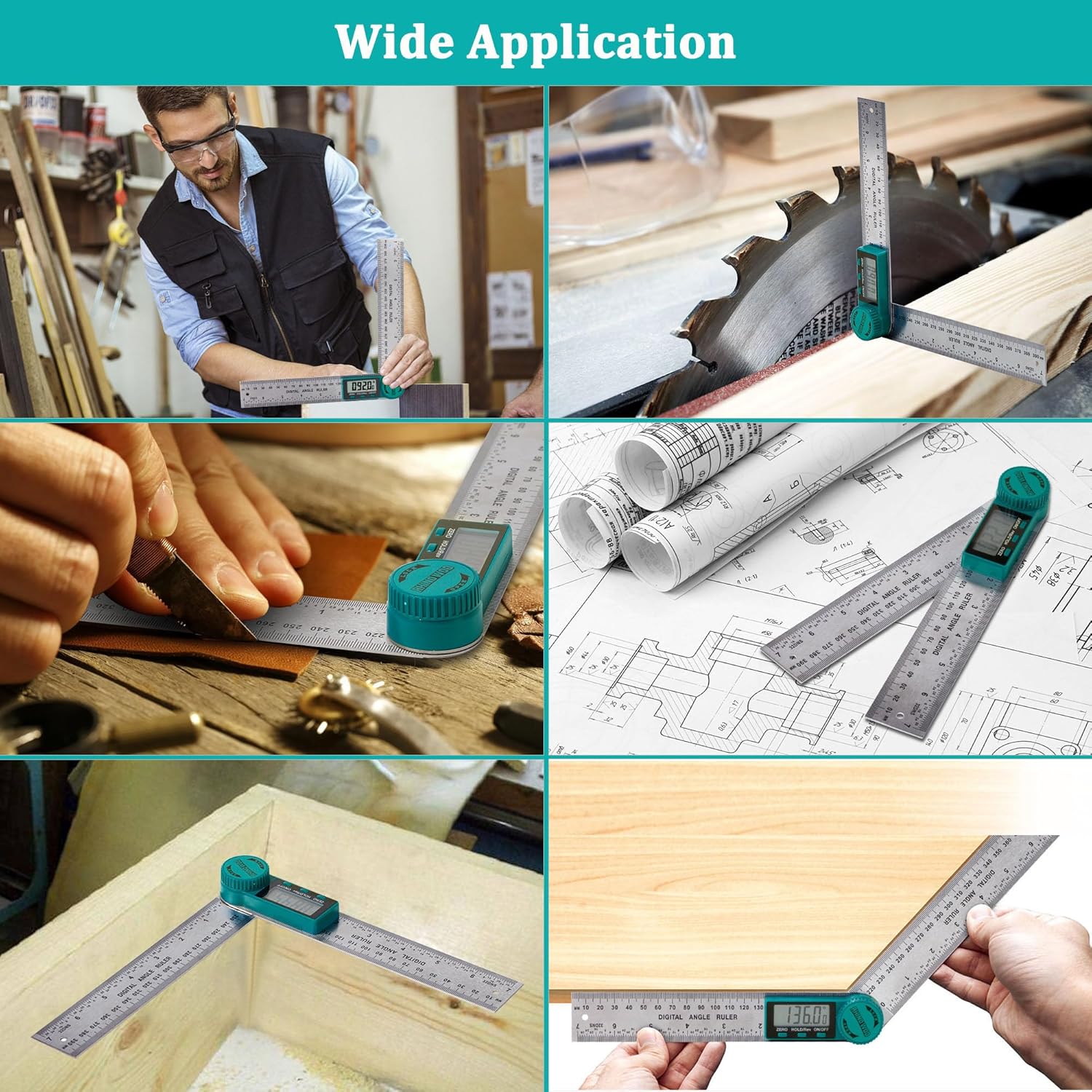 - 【Wide Application】Combining the functions of a digital angle meter and a protractor, it can be used to measure all the angles in your workshop for a wide range of uses, such as checking the angle of a table saw blade or the accuracy of a miter saw, making angle cuts or measurements, trimming or wall angle measurements. A perfect gift for woodworkers, architects, DIY enthusiasts, etc