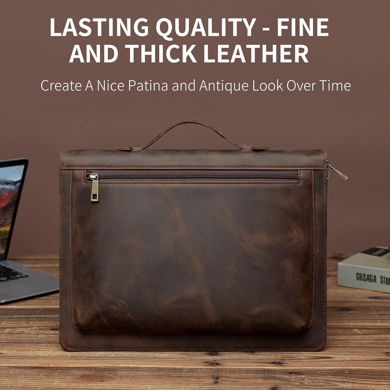 - GIVE THE PROFESSIONAL FIRST EXPRESSION –100% Full Grain Crazy-horse Leather, Our quality leather feels soft and luxurious while protecting all your important documents.Features portable handle for easy travel,Sturdy and smooth zipper, to ensure the safety of items; outside zippered pocket for quick-access,can hold A5-size documents; plenty of storage room and pockets to hold your phone, iPad, documents and other accessories.