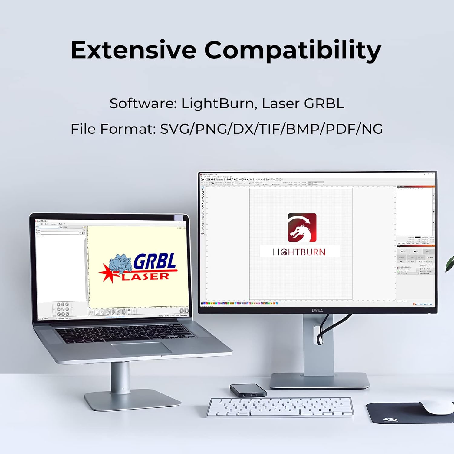 - EASY TO OPERATE - Creality laser engraver can be compatible with various mature engraving software, LightBurn for experirenced laser user and LaserGRBL for new laser user. LaserGRBL Support Win 7 / Win 8/ Win 10/Win XP,LightBurn supports window /Mac /Linux system.And you can transfer data via Wi-Fi, USB cable, and SD card and use Creality laser cutter and engraver machine anytime and anywhere.One-button management make it so easy for you to use anywhere and anytime.