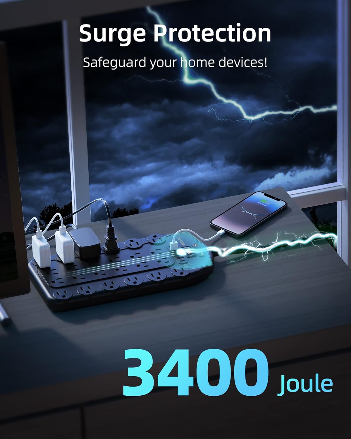 - 【Safeguard Your Devices】-This long outlet power strip has a 3400-Joule energy rating providing a reliable surge protector to protect any meeting room, office, personal workstation, or urround sound system.