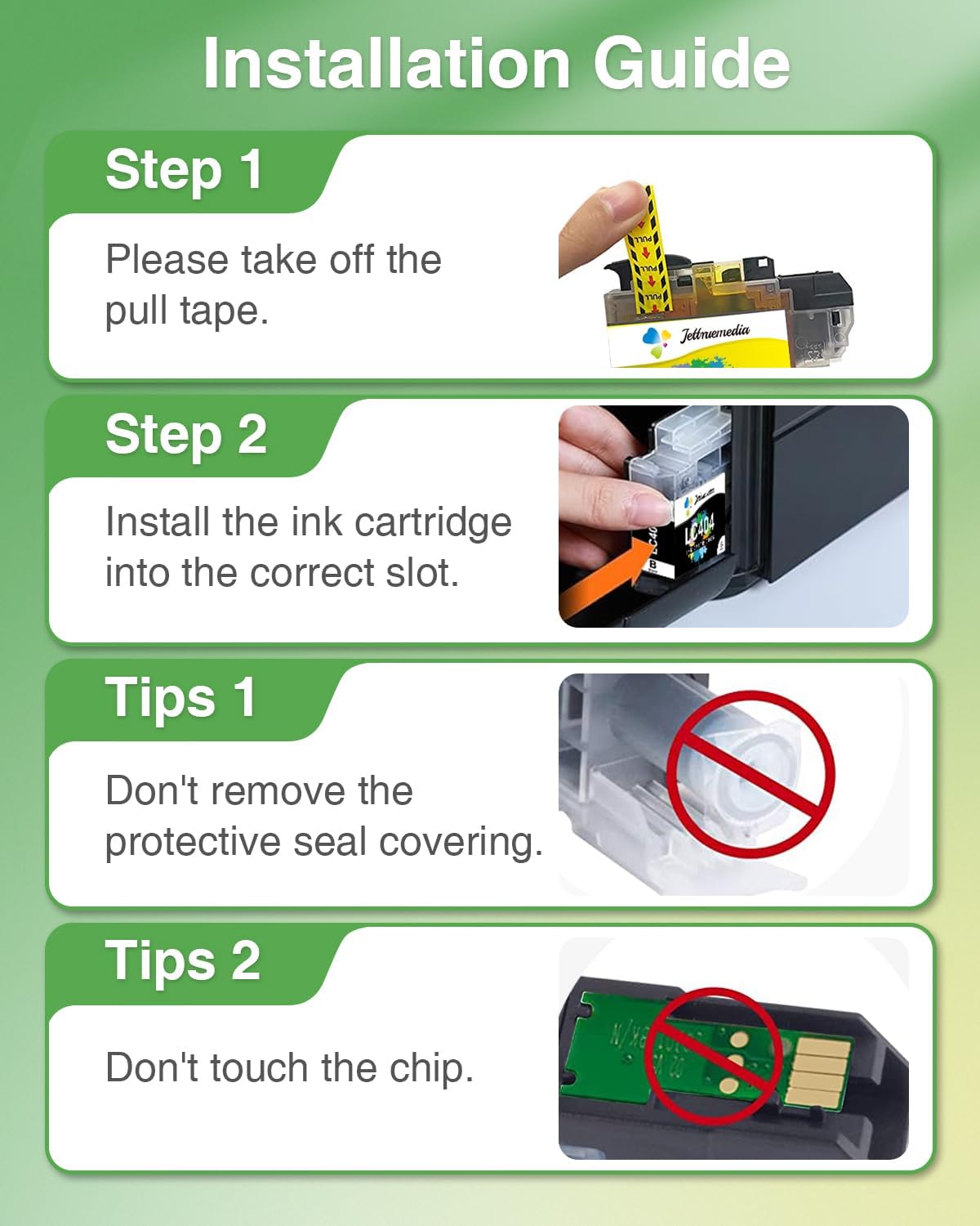 - 【Warm Tips】1. Ignore the printer ink level "?" reminder, it will not affect the use of the cartridge. 2. If your printer shows a message as "Non-Brother Ink", please click "OK", "Yes", "Continue", or just ignore it. This will not affect the cartridge's functionality.