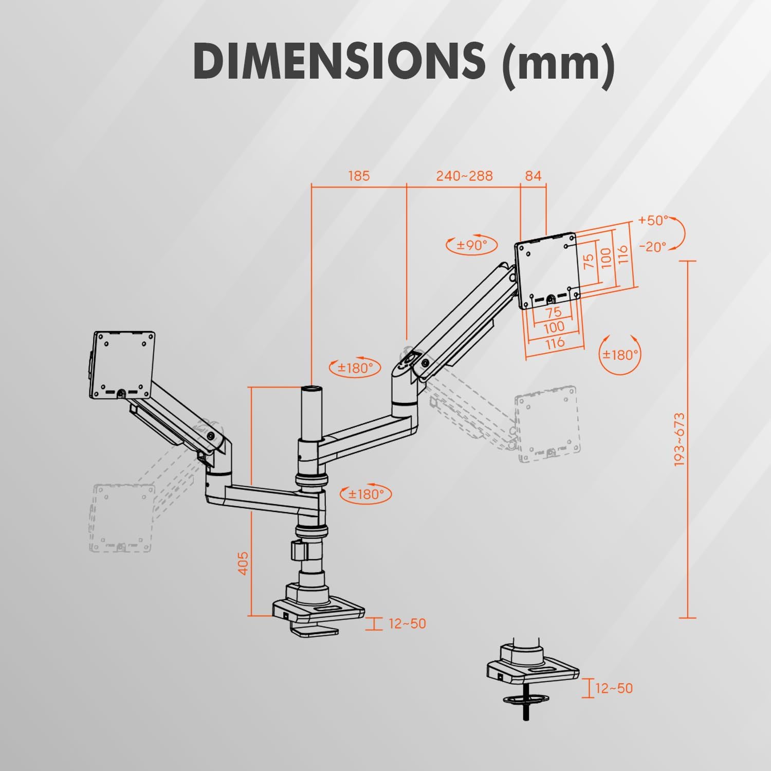 - Robust Desk Dual Monitor Mount –This lightweight yet strong mount offers unparalleled stability and control. Easily attaches to any desk, making it an ideal choice for both home and office environments.
