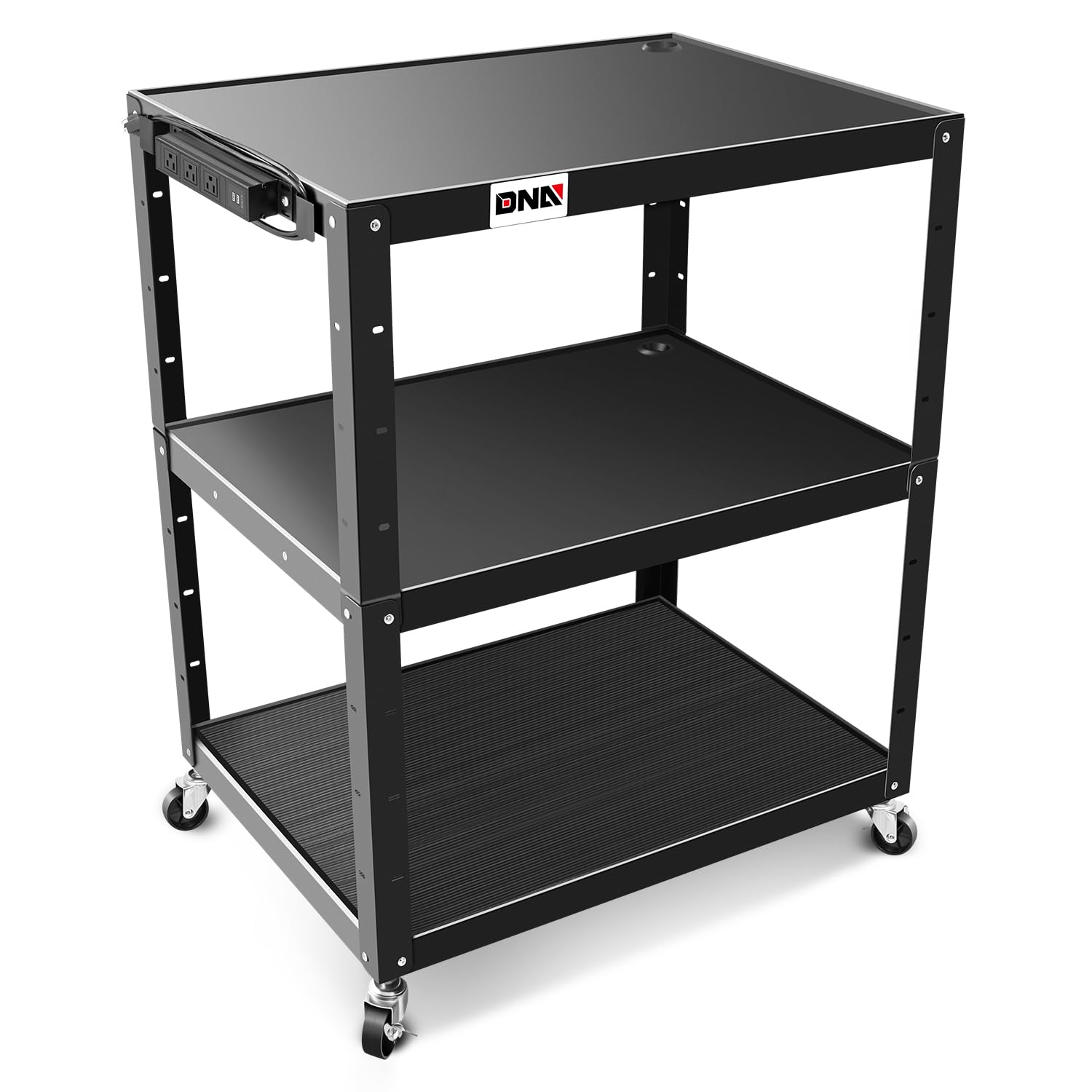 DNA MOTORING 3-Layer Utility Steel AV Cart with Wheels Power Strip, 35" x 25" x 24"-42" Height Adjustable Rolling Projector Cart,TOOLS-00137