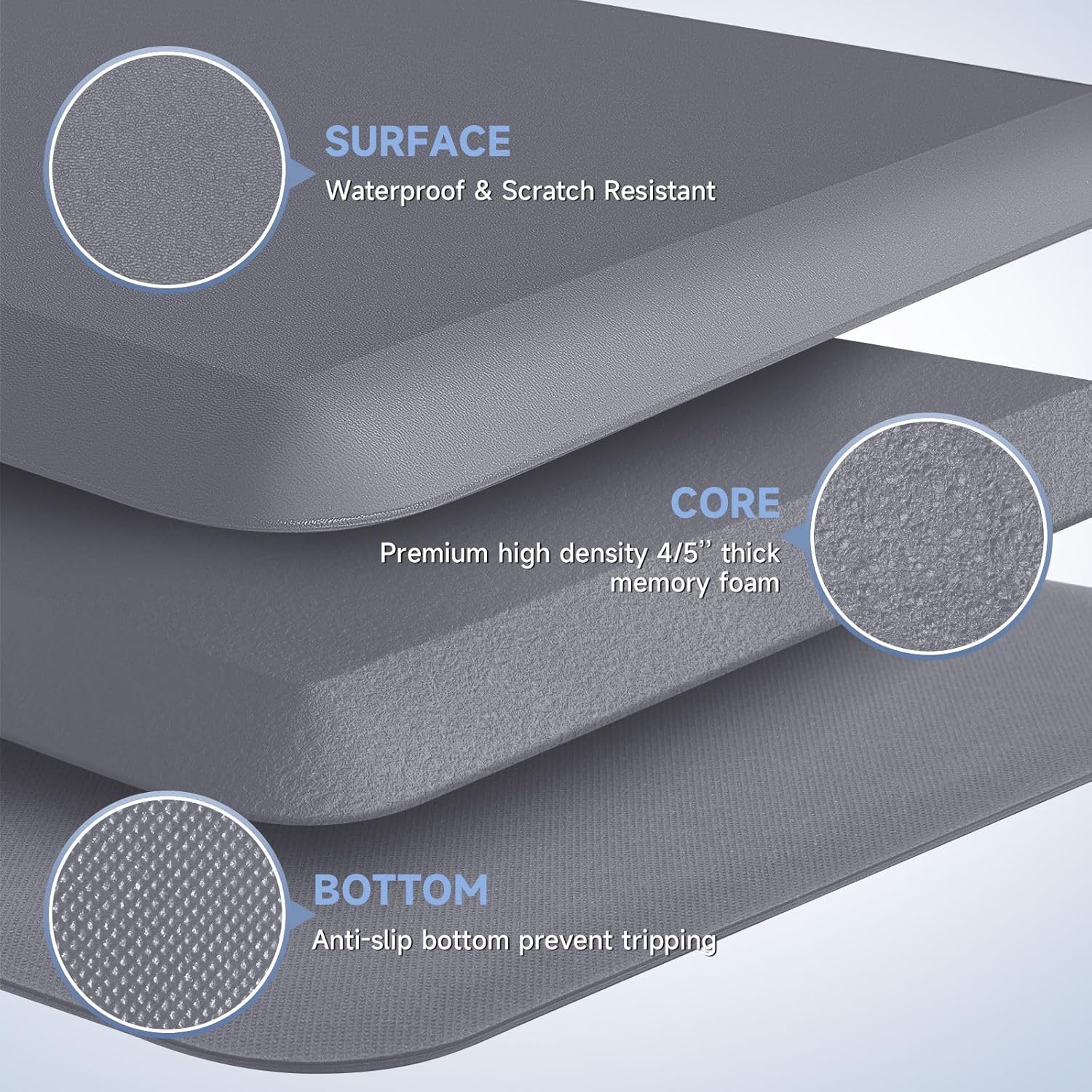 4/5 Inch Thick Kitchen Mat Anti Fatigue Mat Kitchen Rugs Kitchen Decor Non-Slip, Stain Resistant, Waterproof Kitchen Mats Desk Mat for Kitchen, Office, Workshop, Grey, 17'' x 60''
