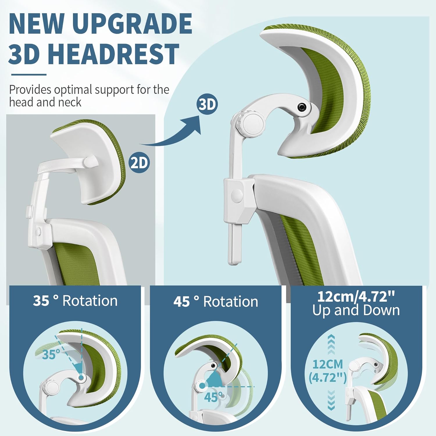 FelixKing Ergonomic Office Chair, Adjustable Lumbar Support, Swivel Chair with HighBack and Armrest, Adjustable Height Gaming Chair, Avocado Green