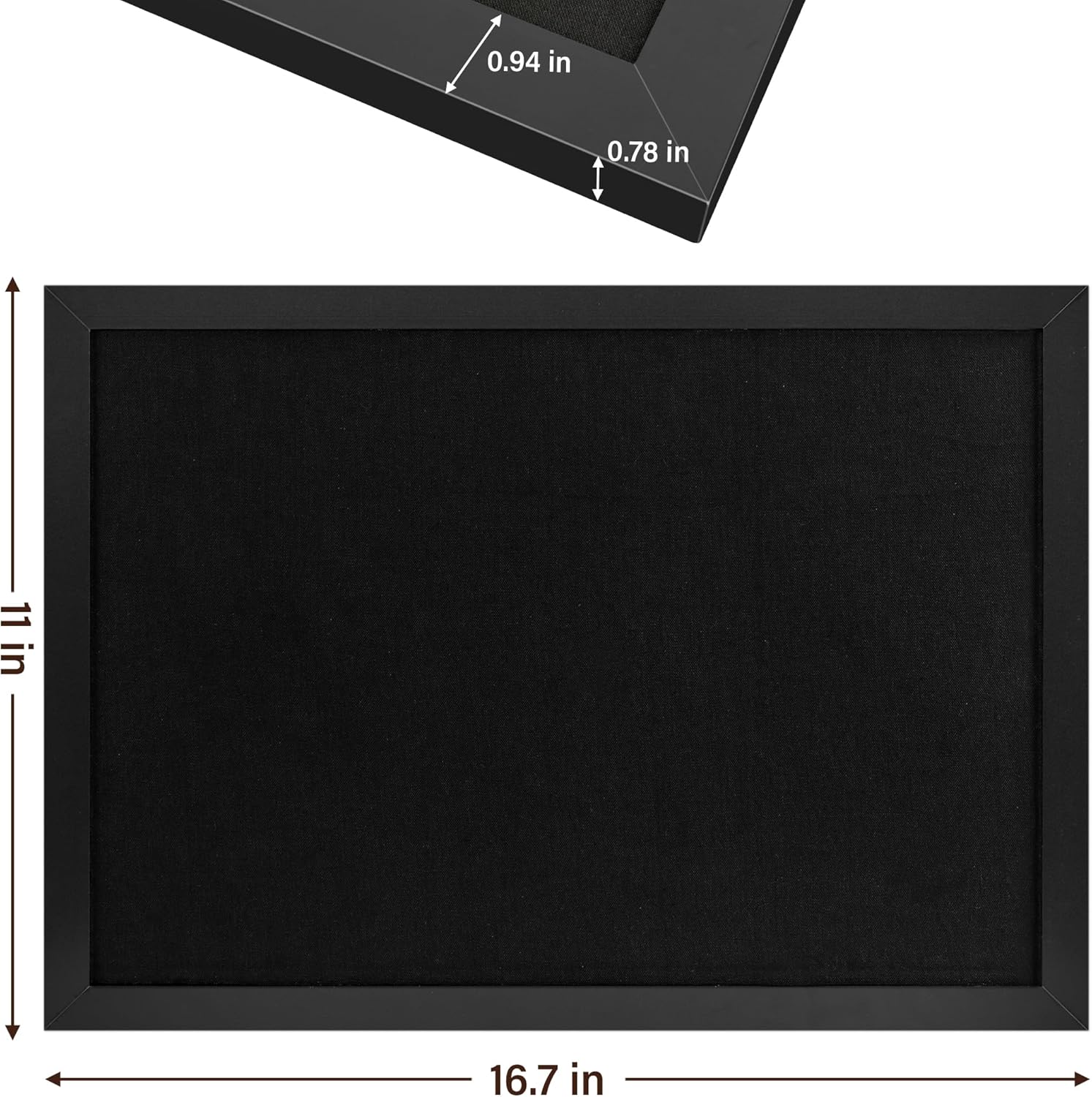 Black Cork Board Bulletin Board 16.7" x 11", Small Linen Corkboards with Frame for Walls, Cute Picture Display Pin Board Vision Board for Room School Office Bedroom 8 Pushpins