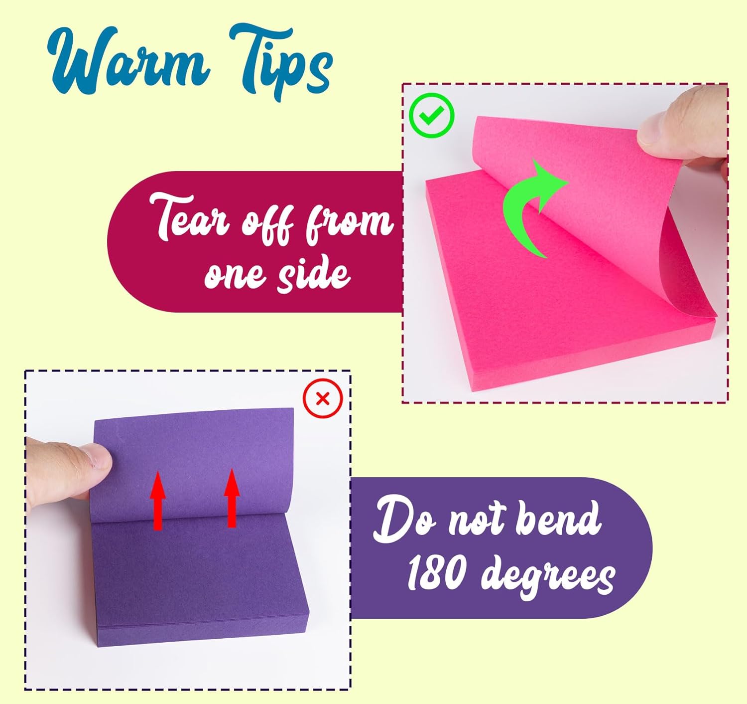 - 【Bright Colors】Our sticky notes which contain 6 vivid colors: Blue, Green, Bright Yellow, Purple, Pink, Red, make it more eye-catching and always remind you of important things.