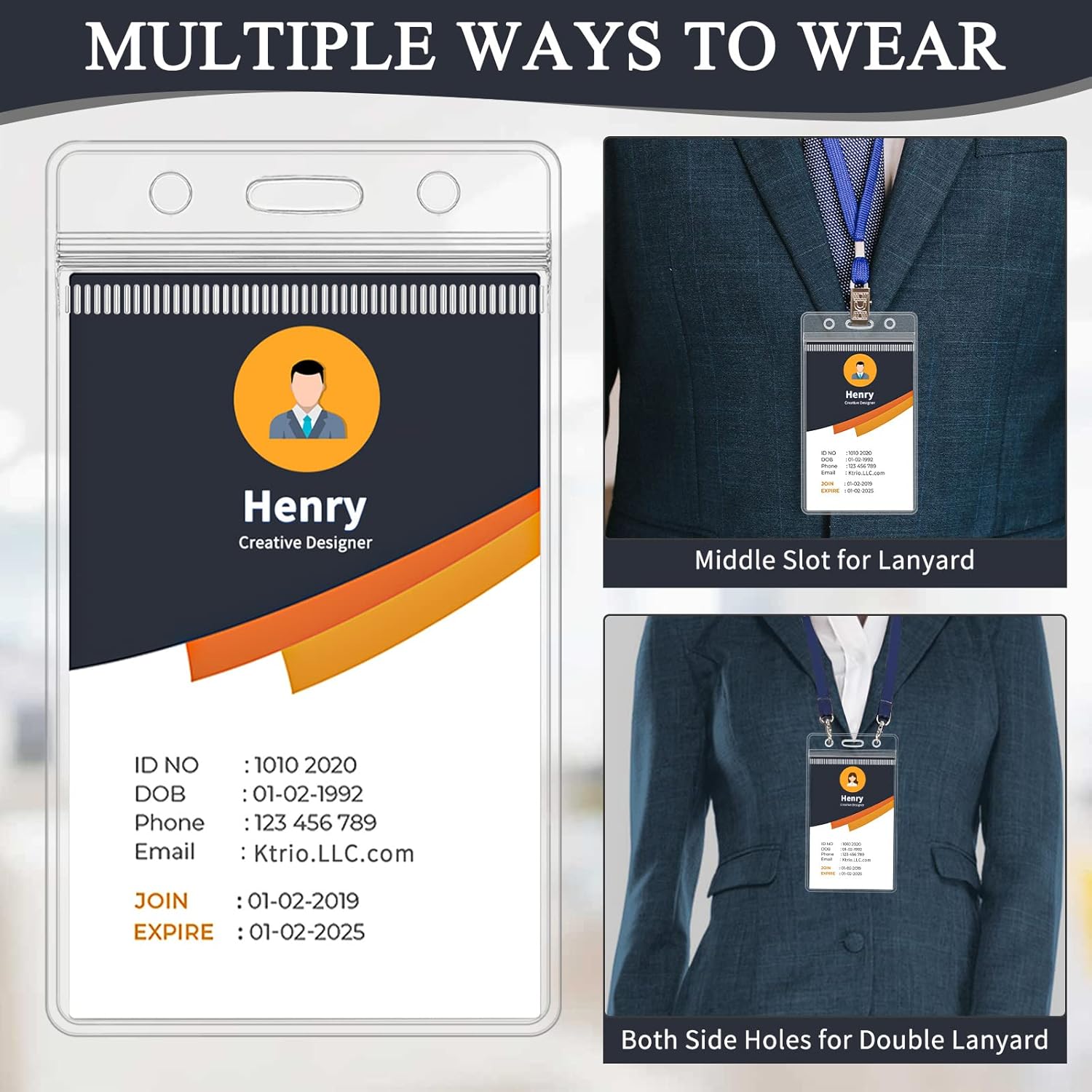 - High Clear Transparency - The high transparency of the ID card badge holder ensures that the contents are visualized, easy to read quickly, and scan, even if multiple badge holders overlap. Suitable for students, office workers, nurses, teachers, volunteers, security guards, maintenance staff, couriers, waiters, etc.