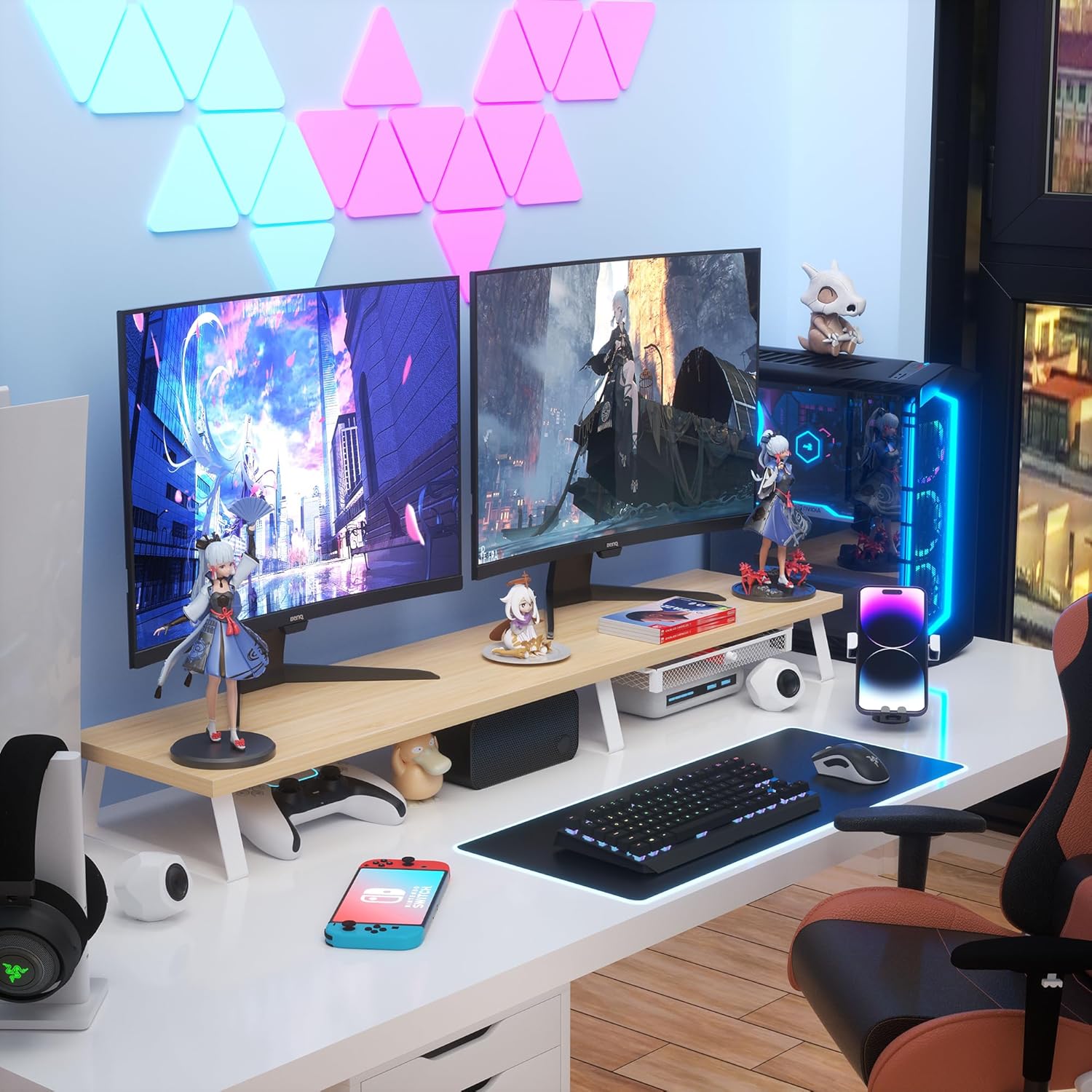 - Computer Monitor Riser: Elevate your monitor or computer to an ergonomic height, promoting an ideal sitting posture and reducing eye strain, neck stiffness, and back pain. This monitor desk riser helps you maintain comfort and productivity throughout the workday by supporting a healthier workspace setup