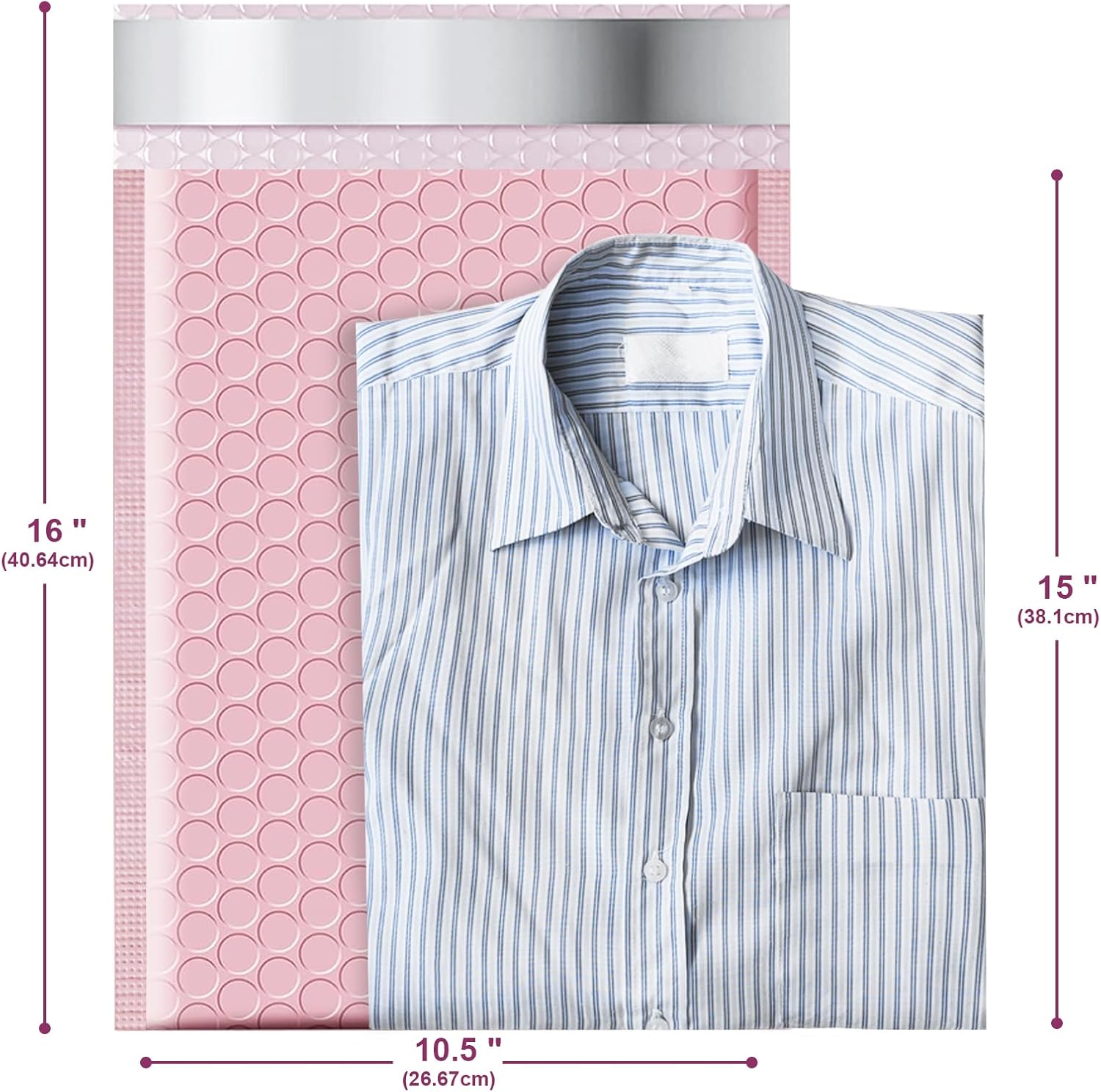 10.5x16 Poly Bubble Mailers #5 Padded Envelopes, 25Pcs Self Seal Mailing Envelopes Bubble Padded Mailers (Pink)