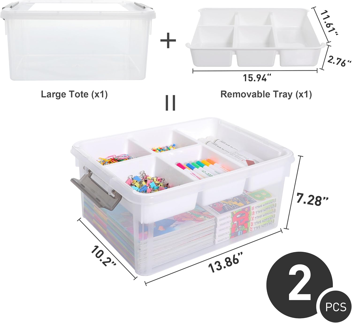 Citylife 17 QT Plastic Storage Box with Removable Tray Craft Organizers and Storage Clear Storage Container for Organizing Bead, Tool, Sewing, Playdoh, 2 Packs