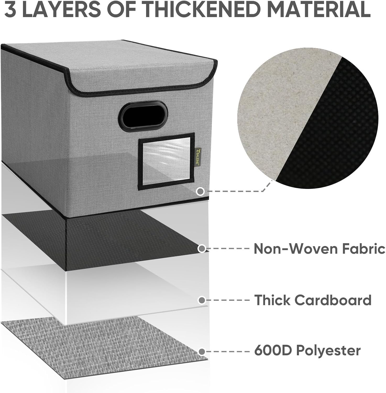 - [DURABLE MATERIAL] The outer layer of our filing box is crafted from high-quality polyester fabric and reinforced with thick cardboard in the middle. This construction ensures that the box maintains its shape and provides better bearing capacity for important documents and files. Its textured appearance can also serve as a stylish decorative element in any office or home.