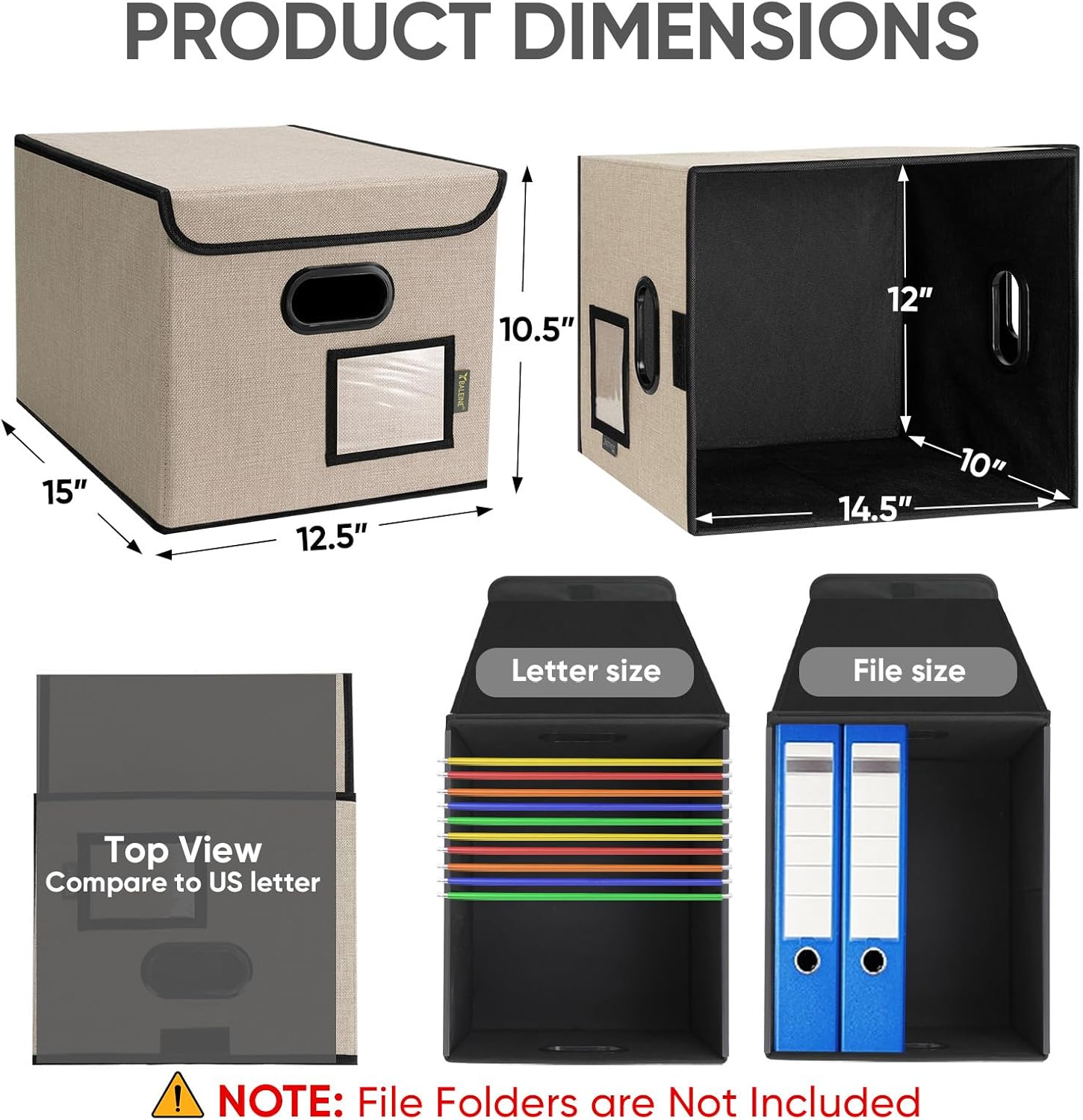 - [DURABLE MATERIAL] The outer layer of our filing box is crafted from high-quality polyester fabric and reinforced with thick cardboard in the middle. This construction ensures that the box maintains its shape and provides better bearing capacity for important documents and files. Its textured appearance can also serve as a stylish decorative element in any office or home.