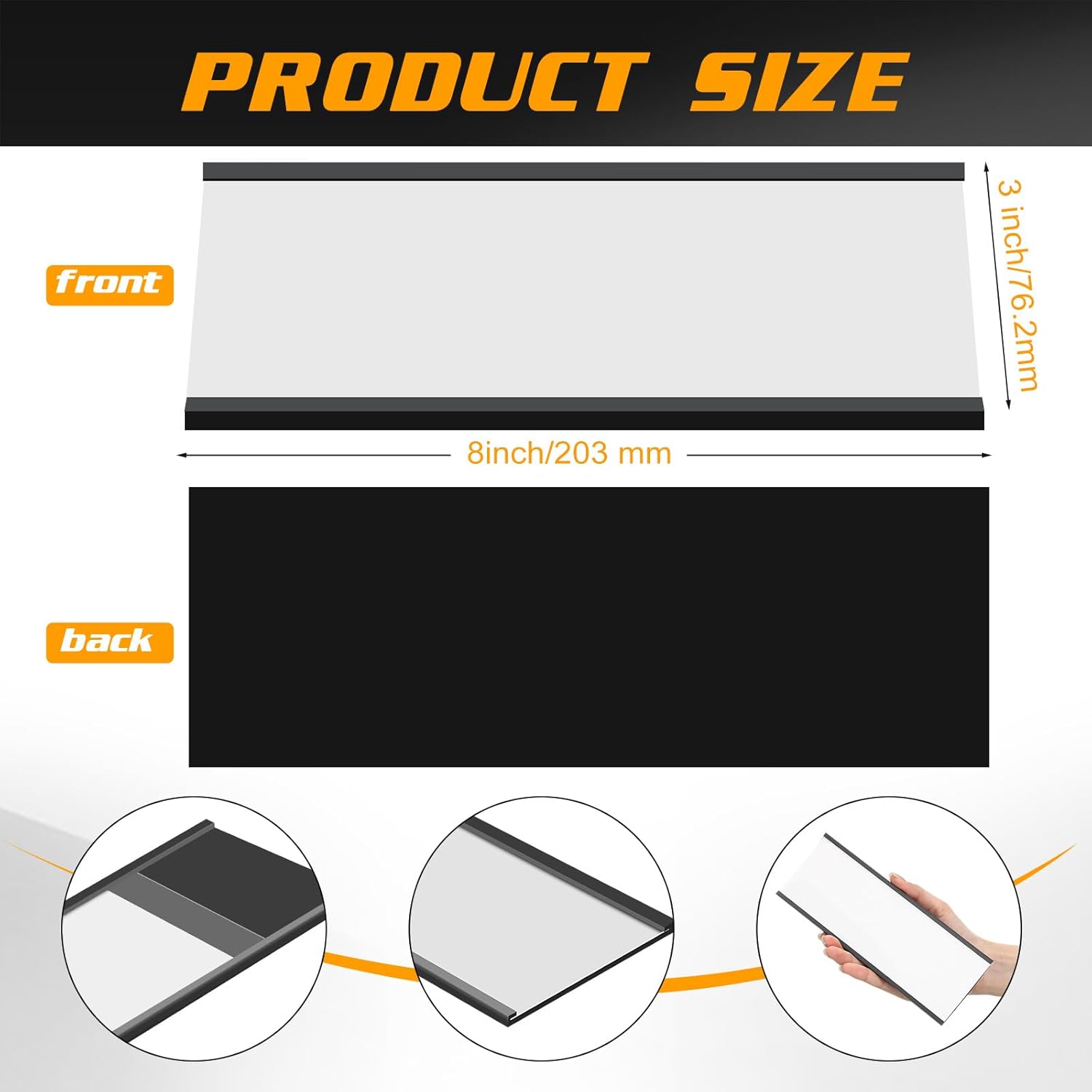 Gueevin 50 Pcs Magnetic C Channel Label Holders 3 x 8 Inch Label Holders Magnet Name Plate with Paper Inserts and Clear Plastic Protectors for File Cabinet Shelf Toolbox Drawer