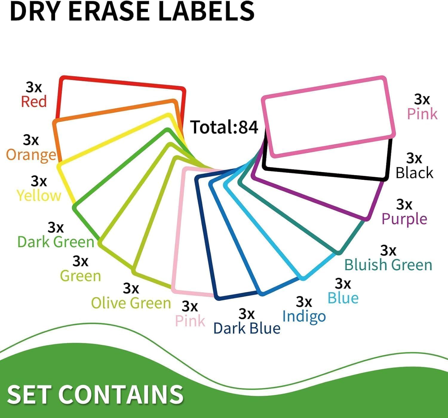 - 💖Dry Erase labels are great for storage bins, bottles, whiteboard, wall, fridge etc in Office, Classroom, Home and more, also use as pantry labels, jar labels, chalkboard tags, name tag stickers, message notes and more.